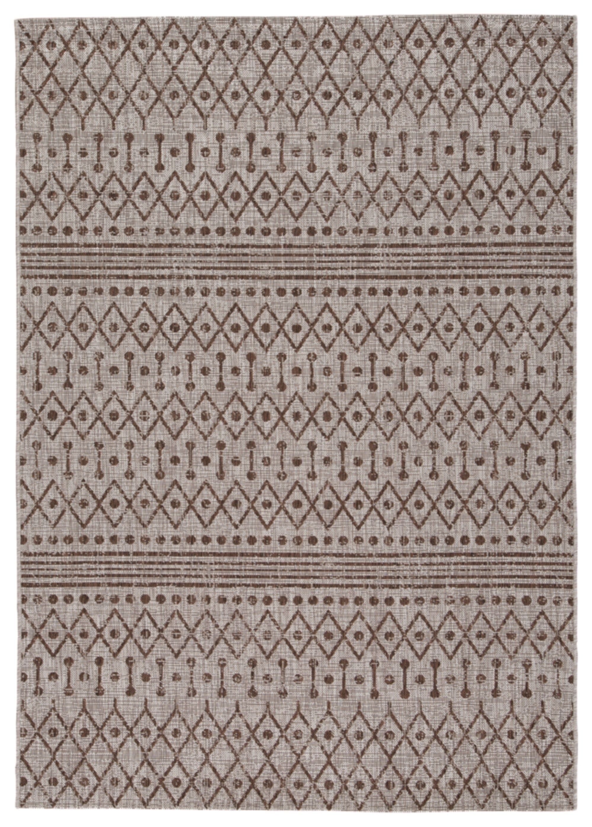 Update your space in a beautiful way with the Dubot indoor/outdoor area rug. Its casual geometric design, in shades of tan, brown and white, ingrains a modern sensibility that simply suits your style.