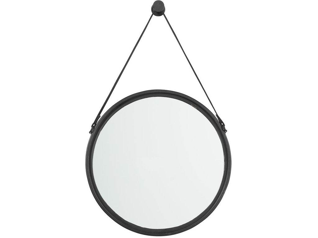 Simply a mixed-media masterpiece. Dusan accent mirror's genuine leather strap hangs from a metal post, making for one stunningly unique look.