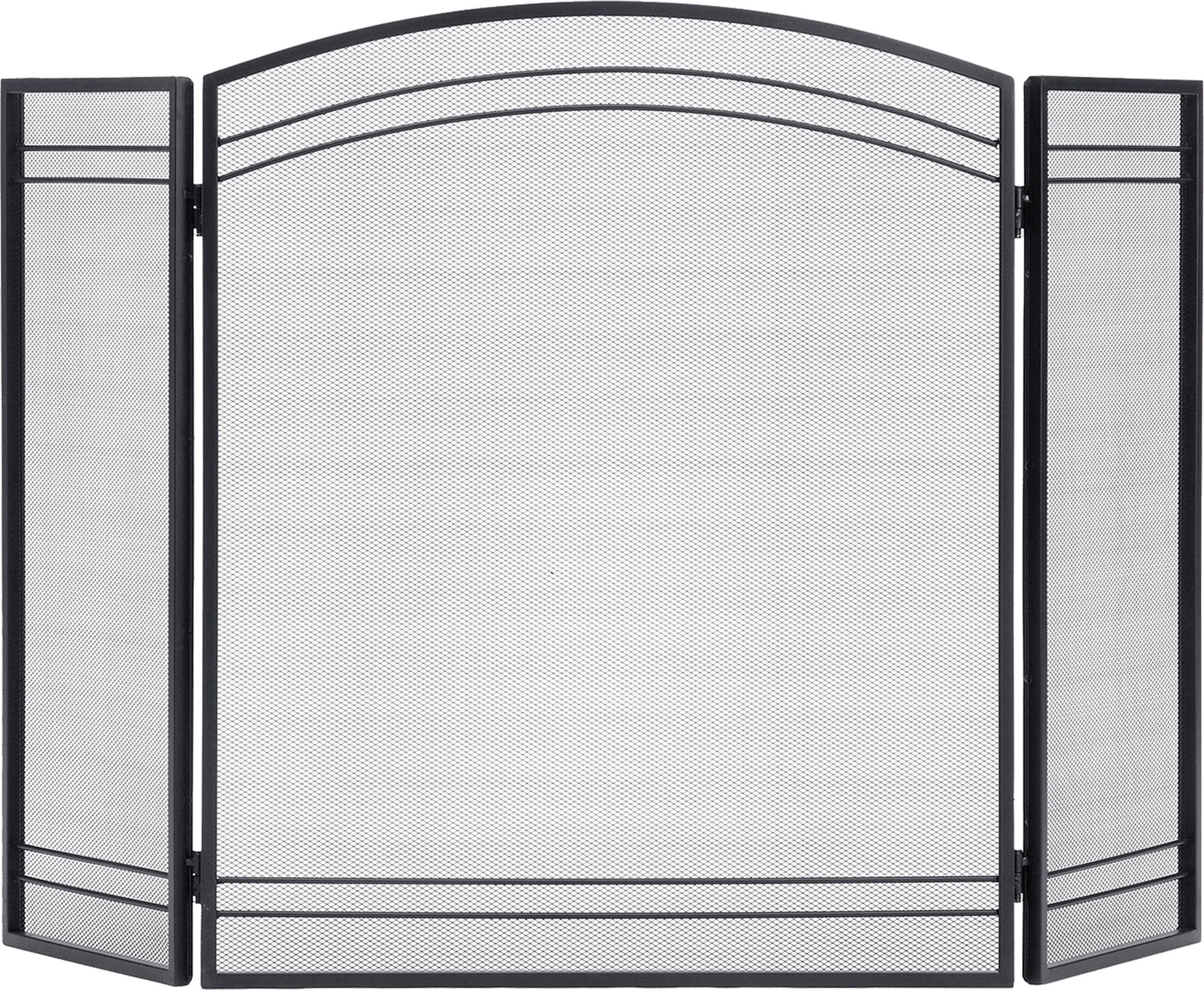 Constructed of sturdy square tube steel. Traditional black finish complements any décor. Three-panel hinged design allows for protection flexibility. No assembly required -- ready to go out of the box. A matching fireplace log holder is available.