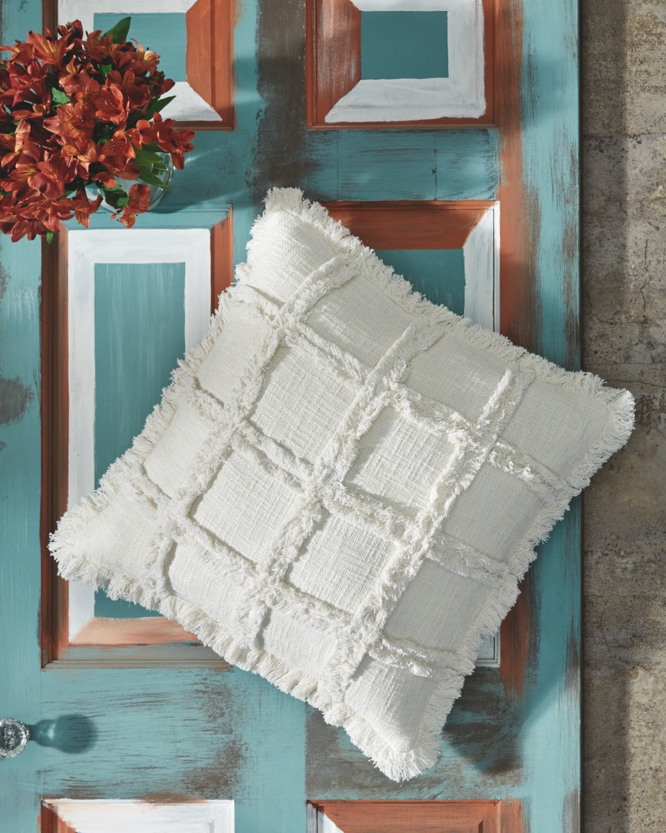 You can’t go wrong with this embroidered fringe look in ivory. This laidback pillow brings a touch of elegance into your home where you need it most. Neutral enough to fit in, but stylish enough to stand out.