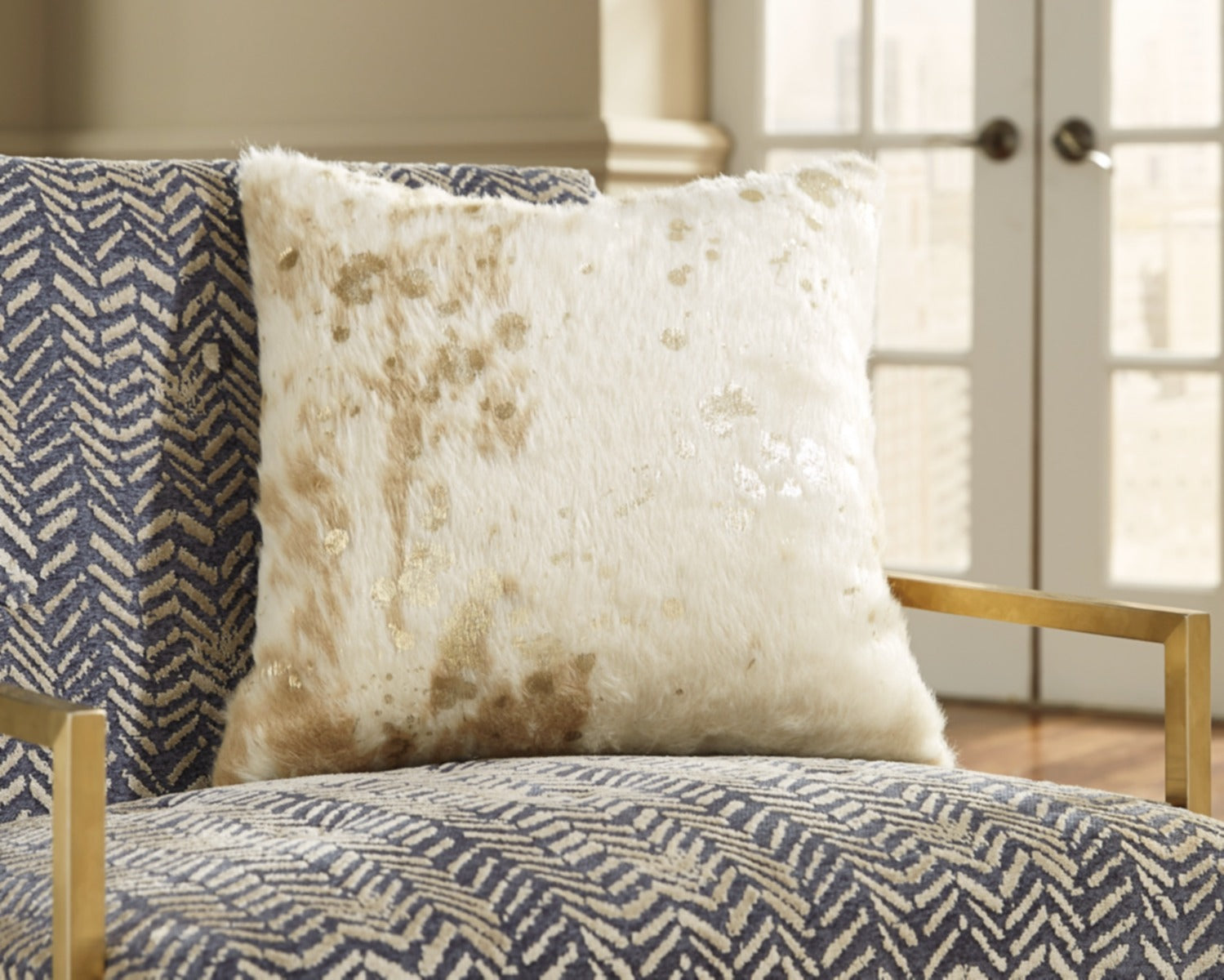 This faux fur accent pillow makes indulgence comfortably affordable. Masterful mix of cream and goldtone hues is a delightful change from the ordinary. Cozy feel is the essence of luxury living.