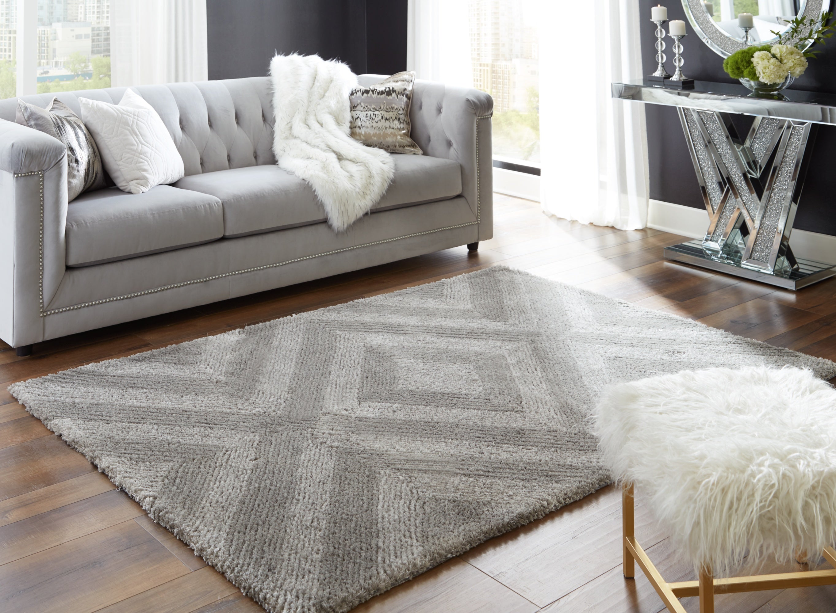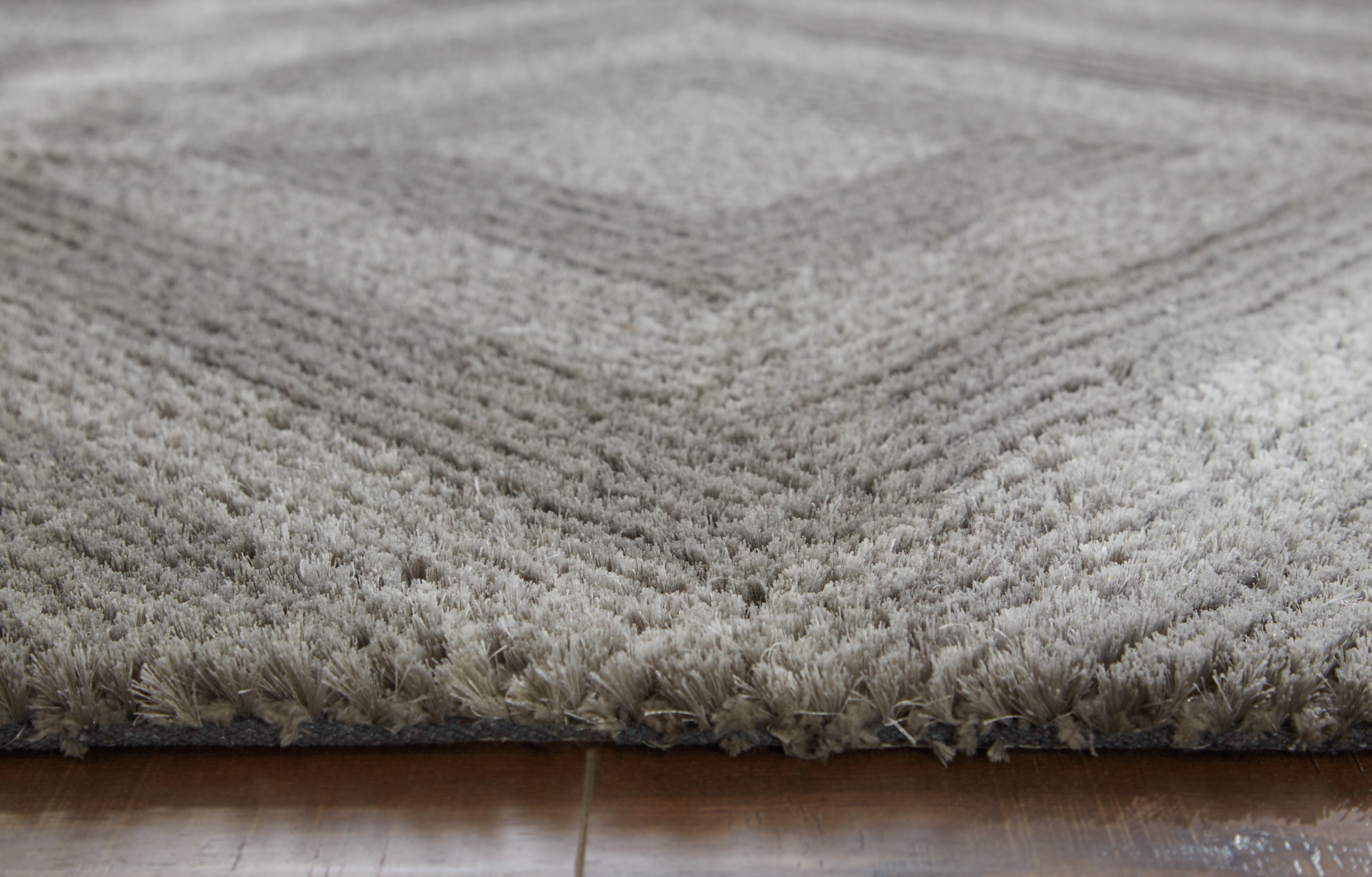 Reshape a space with warmth, color and character with the Paulick area rug. Loaded with sumptuous texture and featuring a hand-tufted high-low diamond design in shades of gray, the rug is a pleasure for the senses.