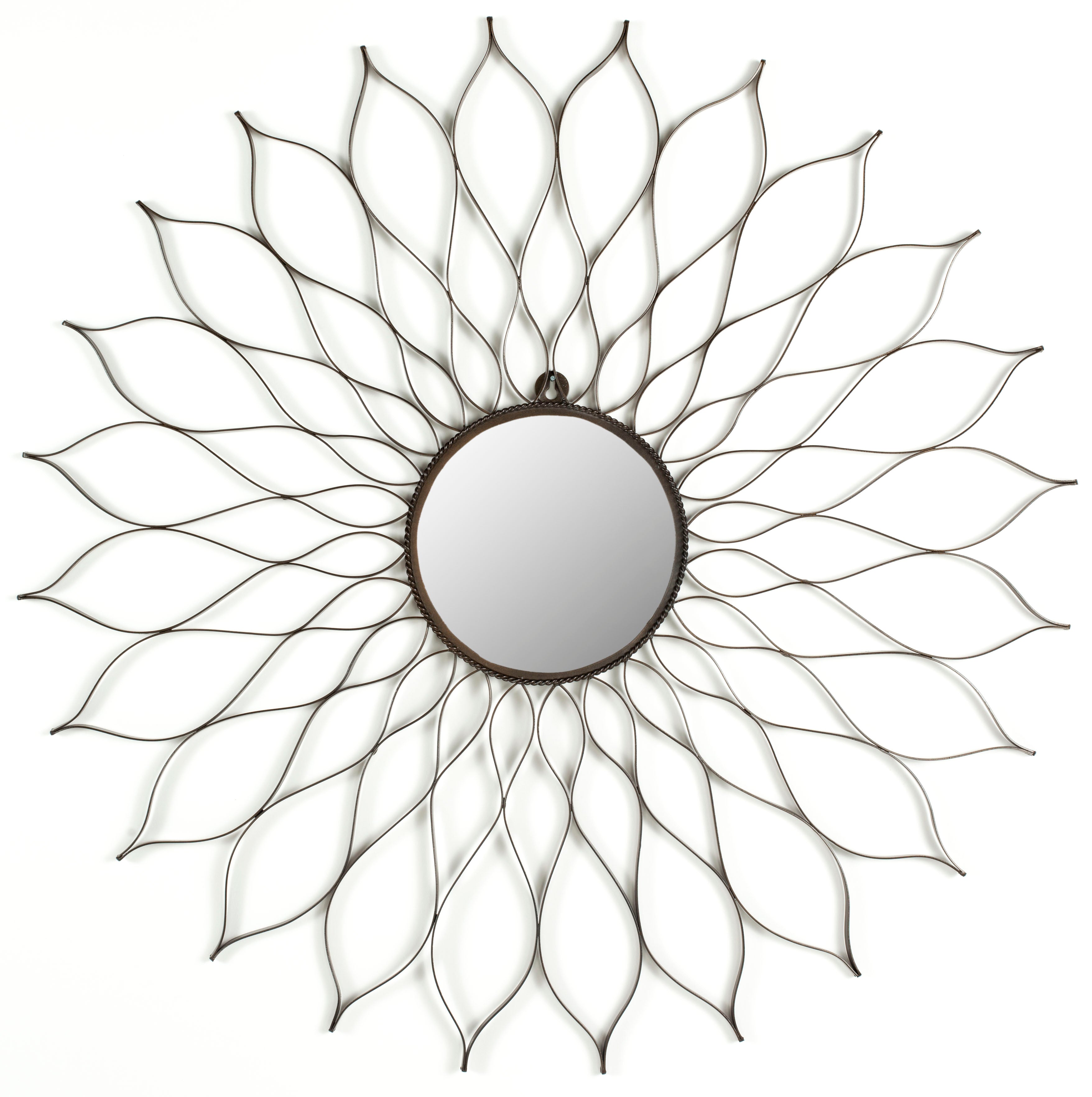 Lightly wrought iron petals gently spread out around a mirrored disc in the Flower Mirror. The delicate styling give this wallflower an airy allure.