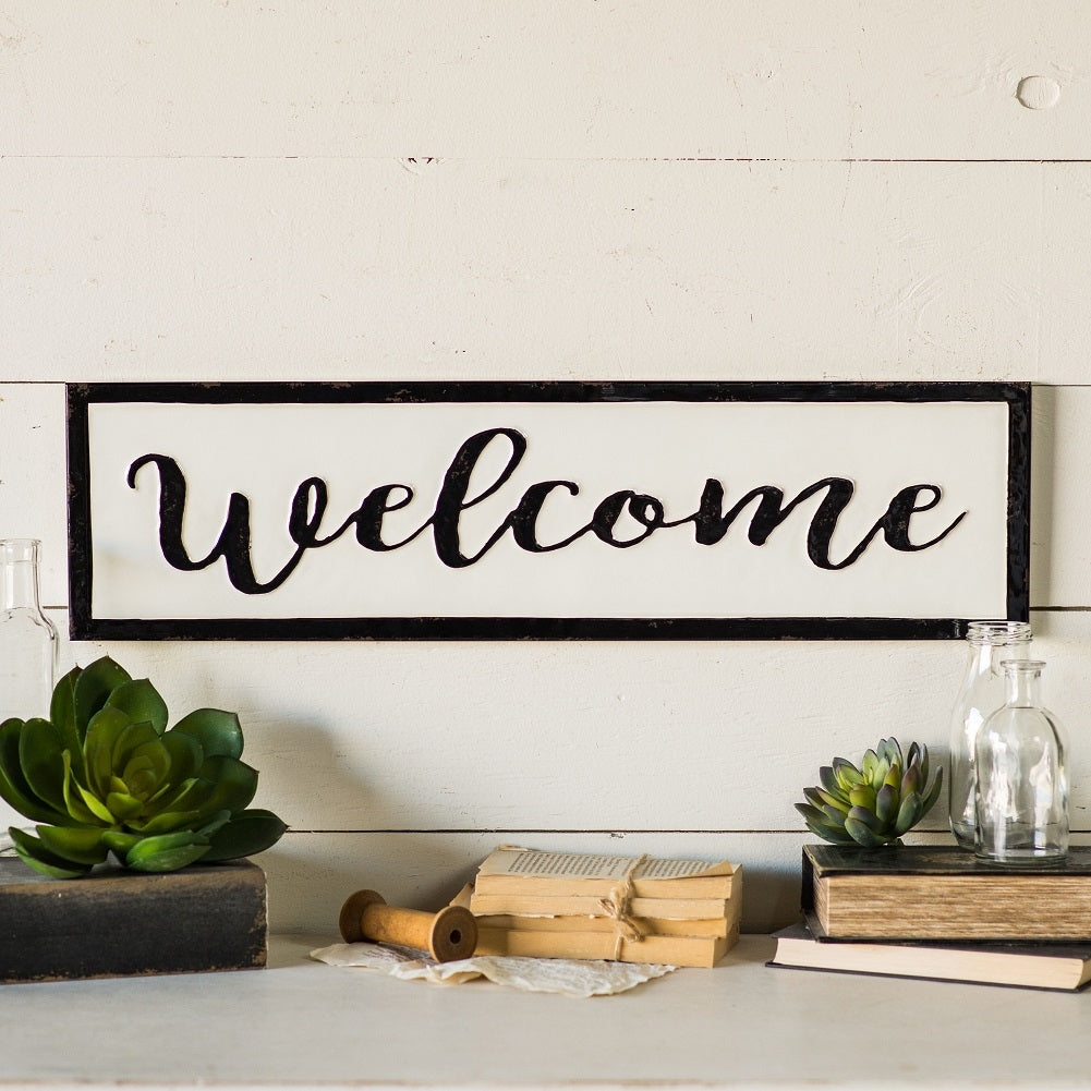 This simple, but elegant, welcome sign is a great way to greet guests visiting your home. The cursive lettering is easy to read as well as inviting and artsy. This sign provides you an easy way to hang.