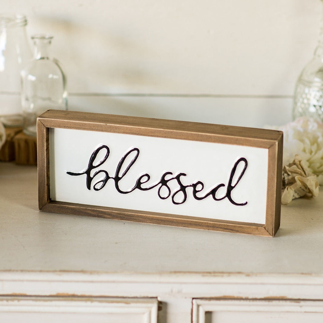 Graceful Sign With Blessed Script With Wooden Frame. Ready To Join Your Sign Wall And Your Farmhouse Home.