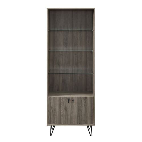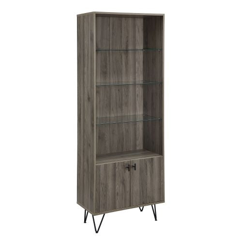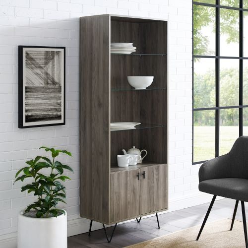 Don't box yourself into boring storage options, instead try something sharp and functional that's still affordable like this mid-century inspired storage cabinet. Hairpin legs elevate the rectangular frame that features both open and closed storage, while also adding a sophisticated flair to the unit. Three adjustable glass shelves easily make this piece a great display cabinet or office hutch. Modern and masculine this mixed material storage shelf will bring a smart edge to your home.