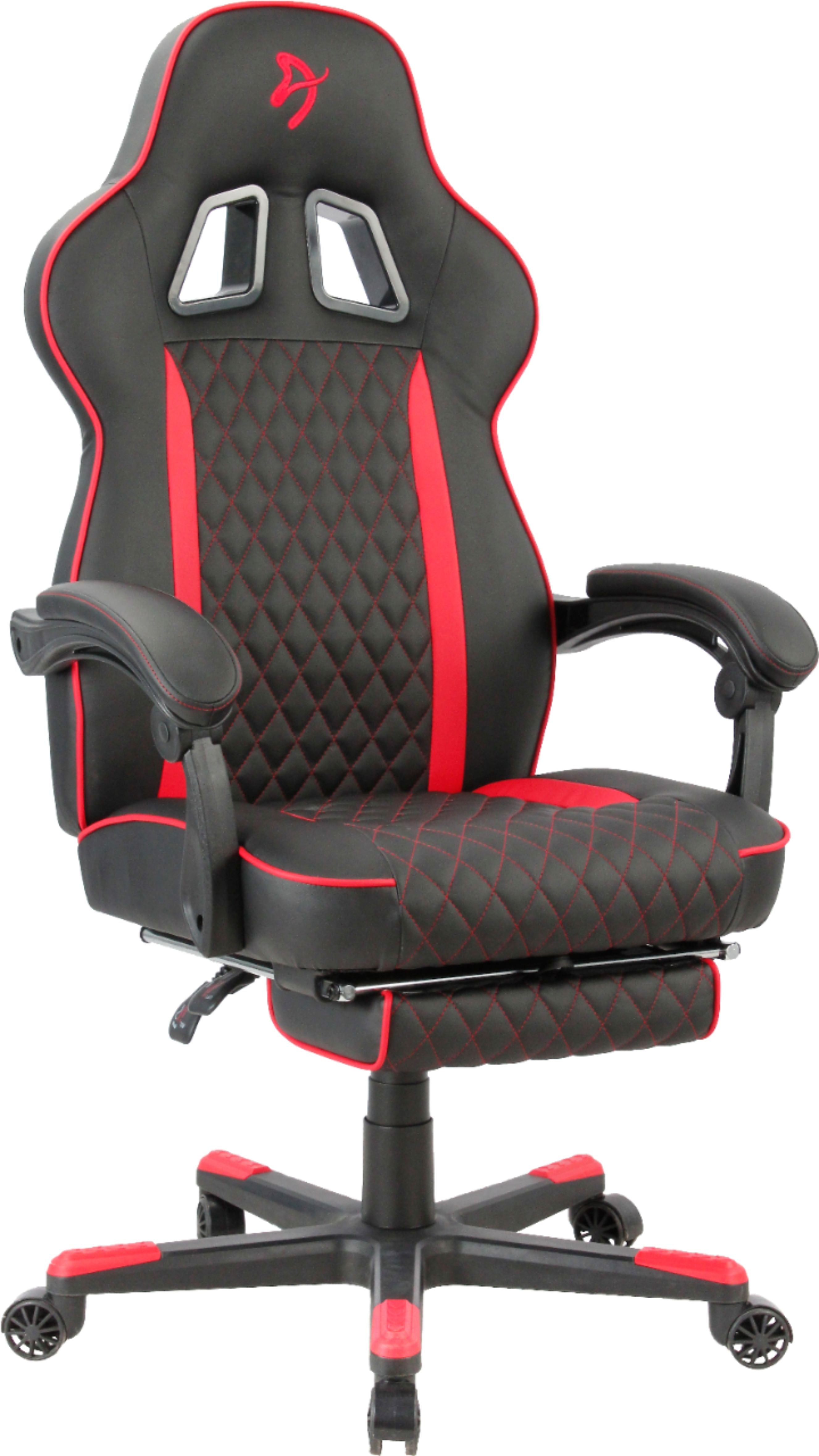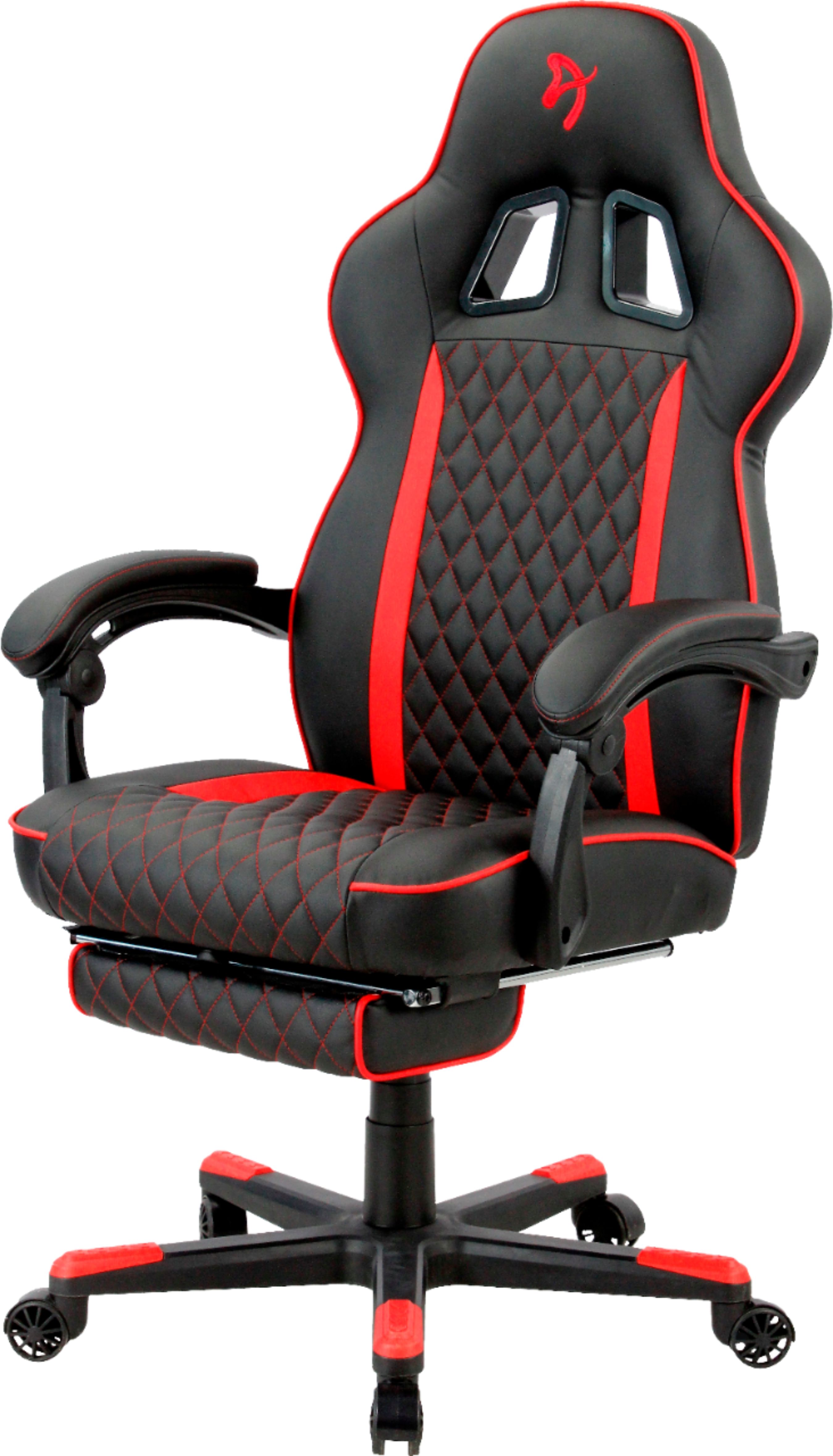 Get an edge over the competition with this Arozzi Mugello series gaming chair. The ergonomic design and thick padded seat and backrest offer comfort during extended gameplay, while five dual-wheel nylon casters allow for easy mobility. This Arozzi Mugello gaming chair has adjustable height for easy customization, and the synthetic polyurethane leather material provides effortless cleanup.