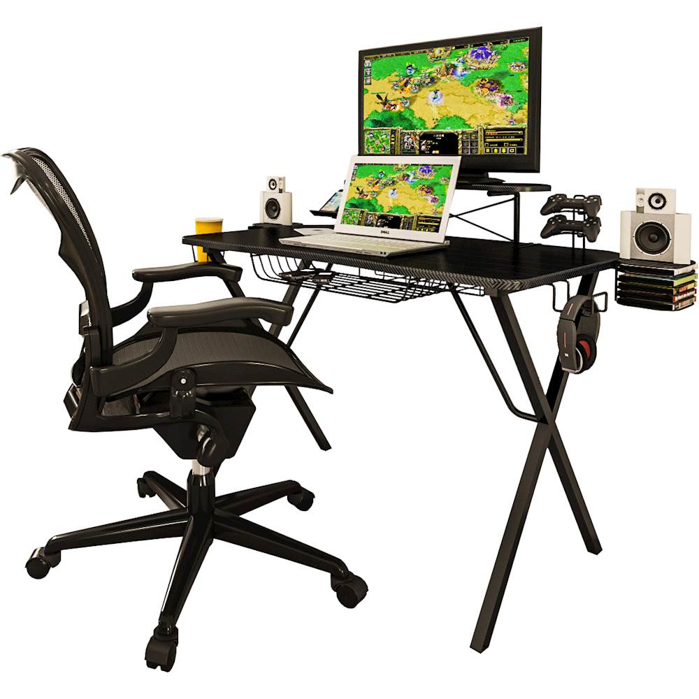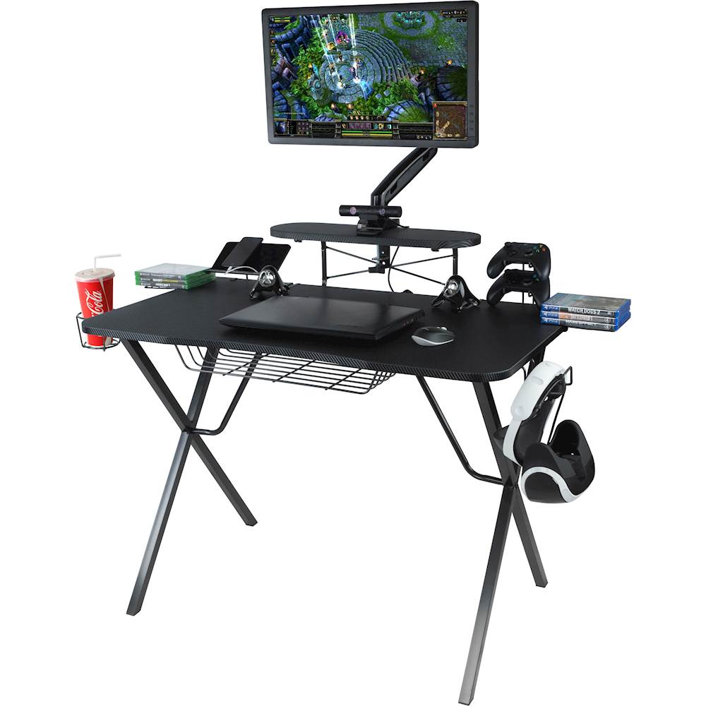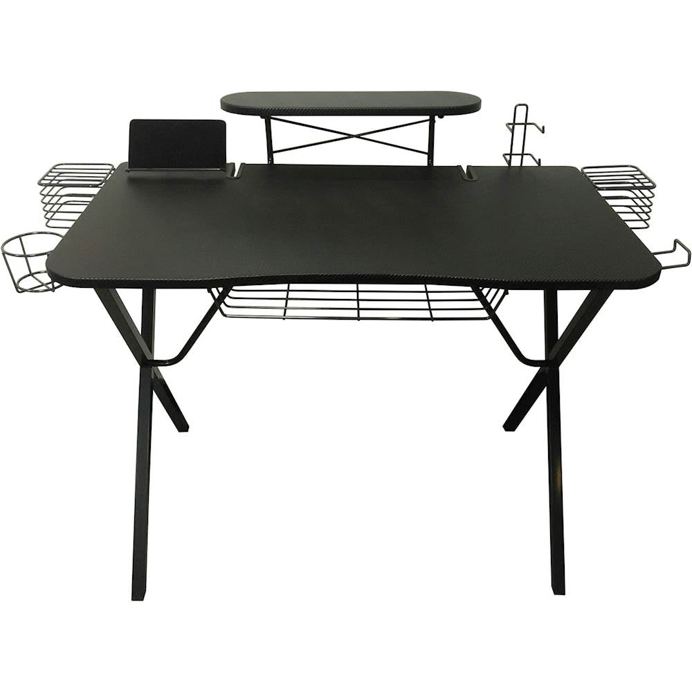 Game like a pro with this Atlantic gaming desk. Built-in metal wire holders keep your peripherals safe and secure while also routing cables neatly to the desktop or laptop at the heart of your gaming system. Study metal construction and a black laminated desk top keep this Atlantic gaming desk looking great even after heavy gaming sessions