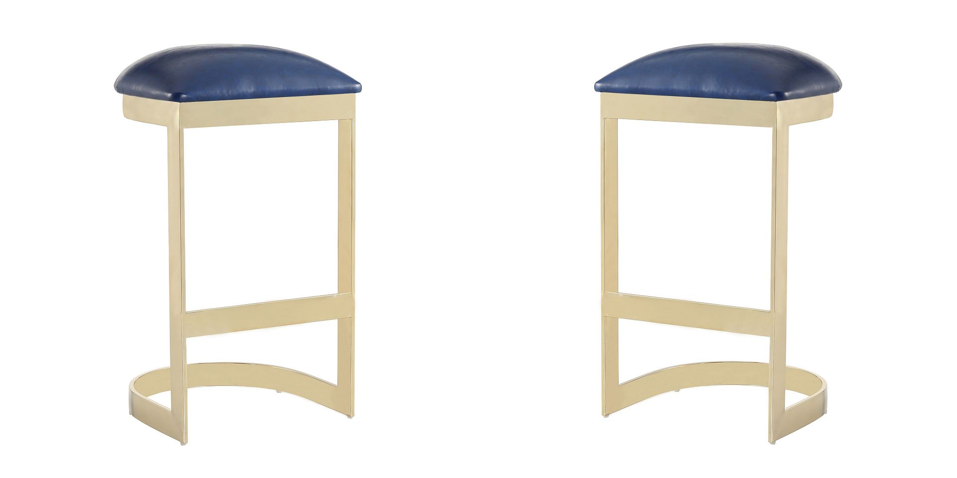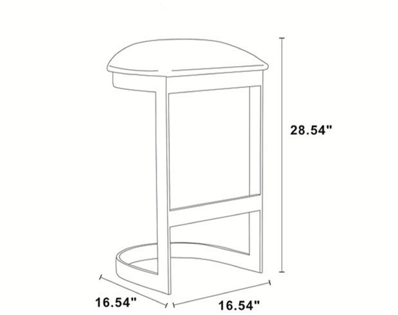 A study in balance. This bar stool is all understated luxury. Featuring a floating frame design with a curved base, its unique modern style creates an undeniable sense of lightness. Smooth Faux Leather upholstery is tailored into a sleek cushioned seat that rests easily on a polished metal base, enhancing its effortless feel. Its chic polished brass finish lends a subtly sumptuous touch that will elevate the atmosphere in any dining space. To complete the look, coordinate with the Aura Dining Chair. 16.54"L x 16.54"W x 28.54"H