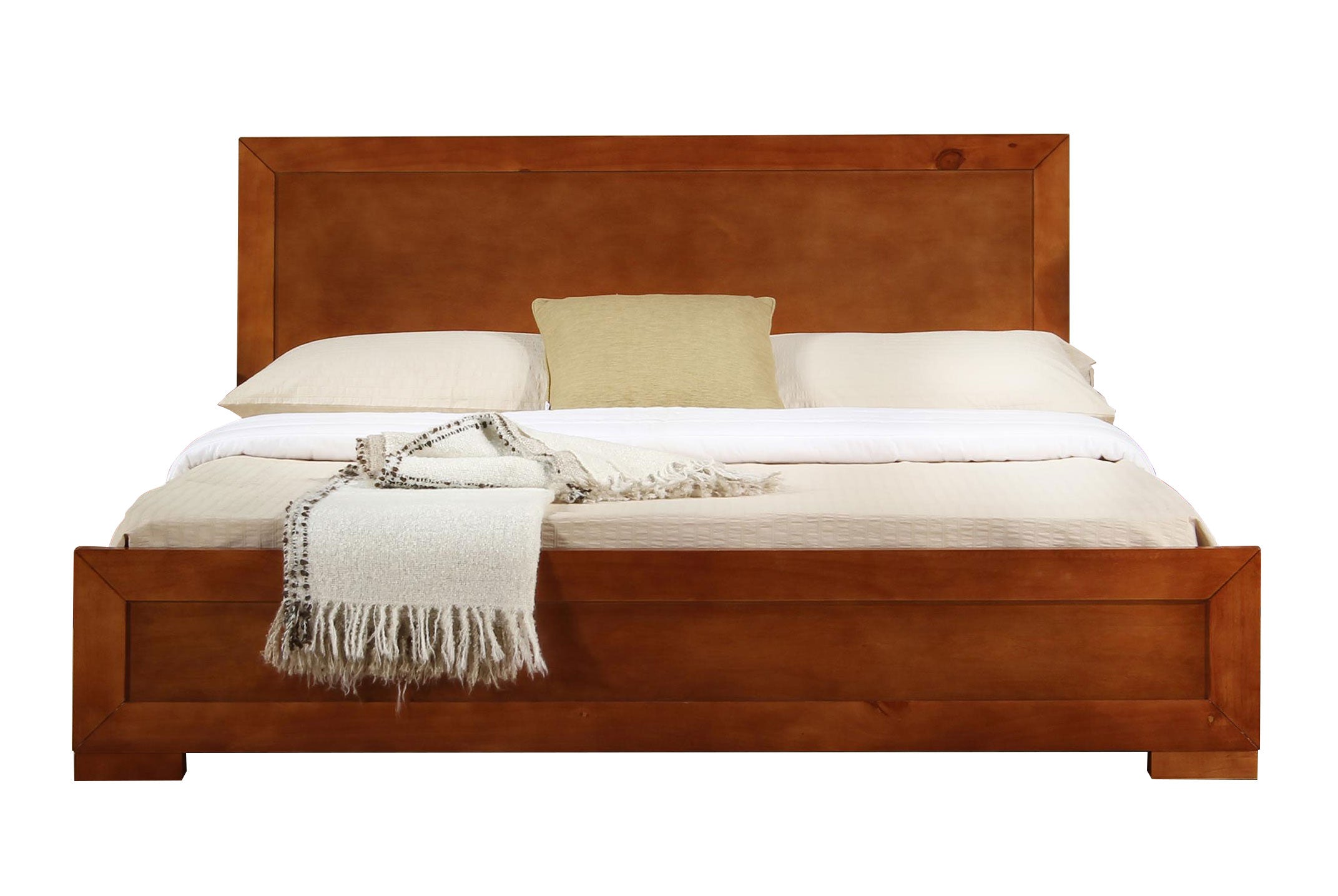The Trent Platform Bed is a simple yet elegant wooden bed that provides a beautiful and functional centerpiece to any bedroom. Carefully constructed from wood, the Trent comes with an elegantly designed headboard for a polished and refined style. With this platform bed, no box spring is needed though can be used based on your mattress height preference. A complete slat system extends the life of your mattress. Don't be fooled by other beds with 4 or 5 slats and expect the mattress not to sag. Our slats are properly spaced to provide full coverage and maximum support. Takes any standard mattress.