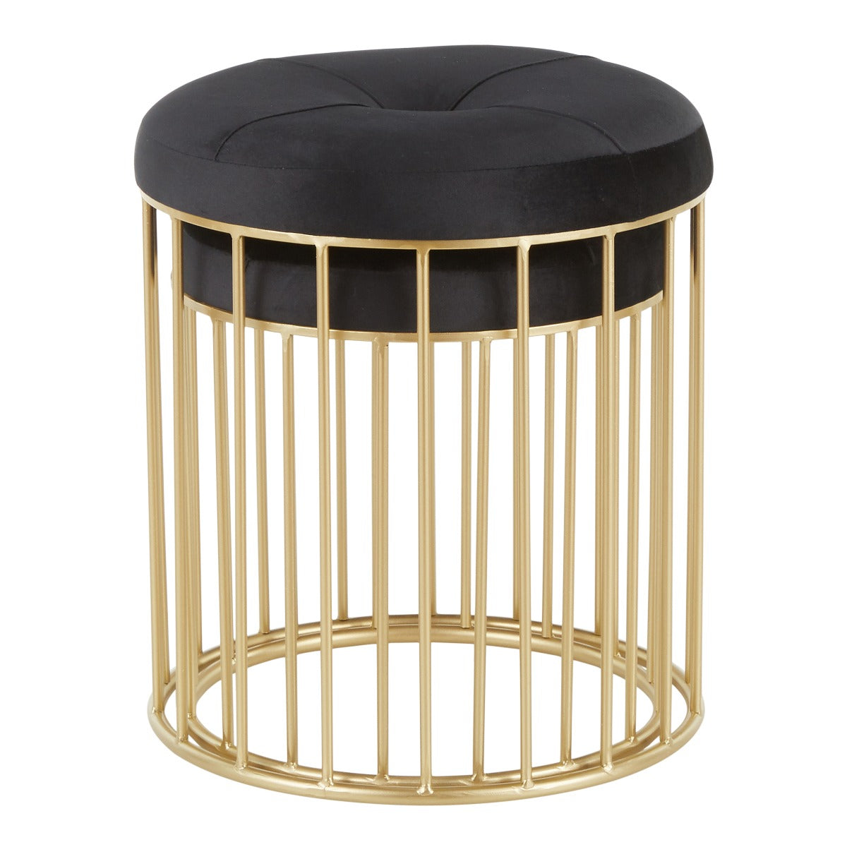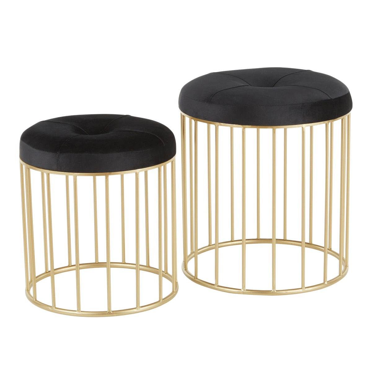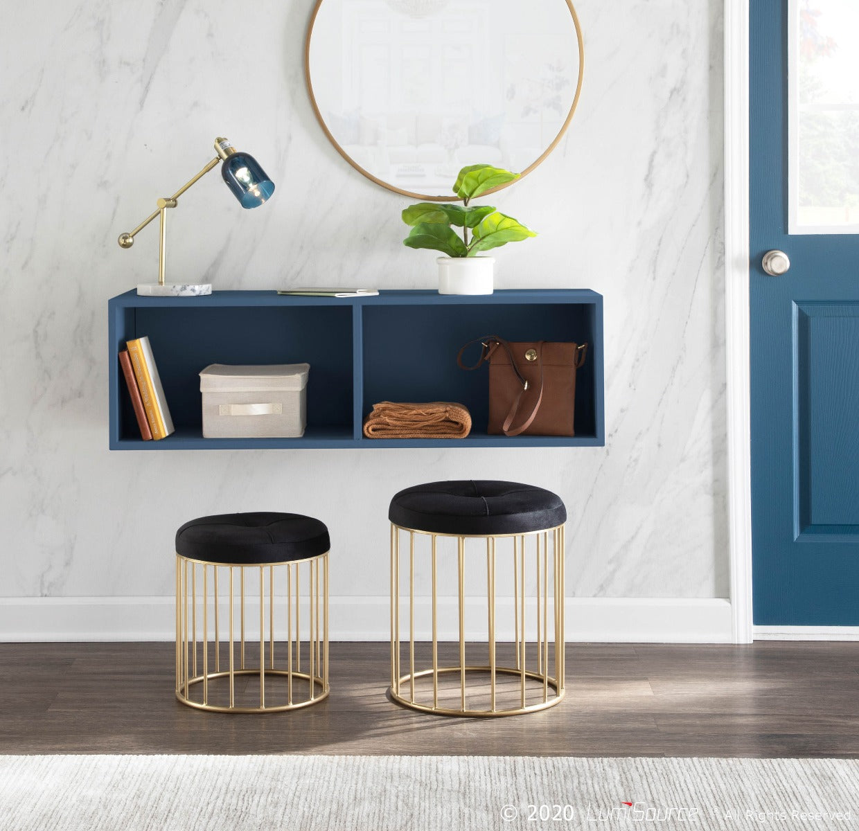 Opulent and confidently contemporary - that's the Canary Nesting Ottoman by LumiSource. Featuring a captivating cage-like gold-tone metal base and an elegant upholstered top, these ottomans nest into one another for convenient storage.