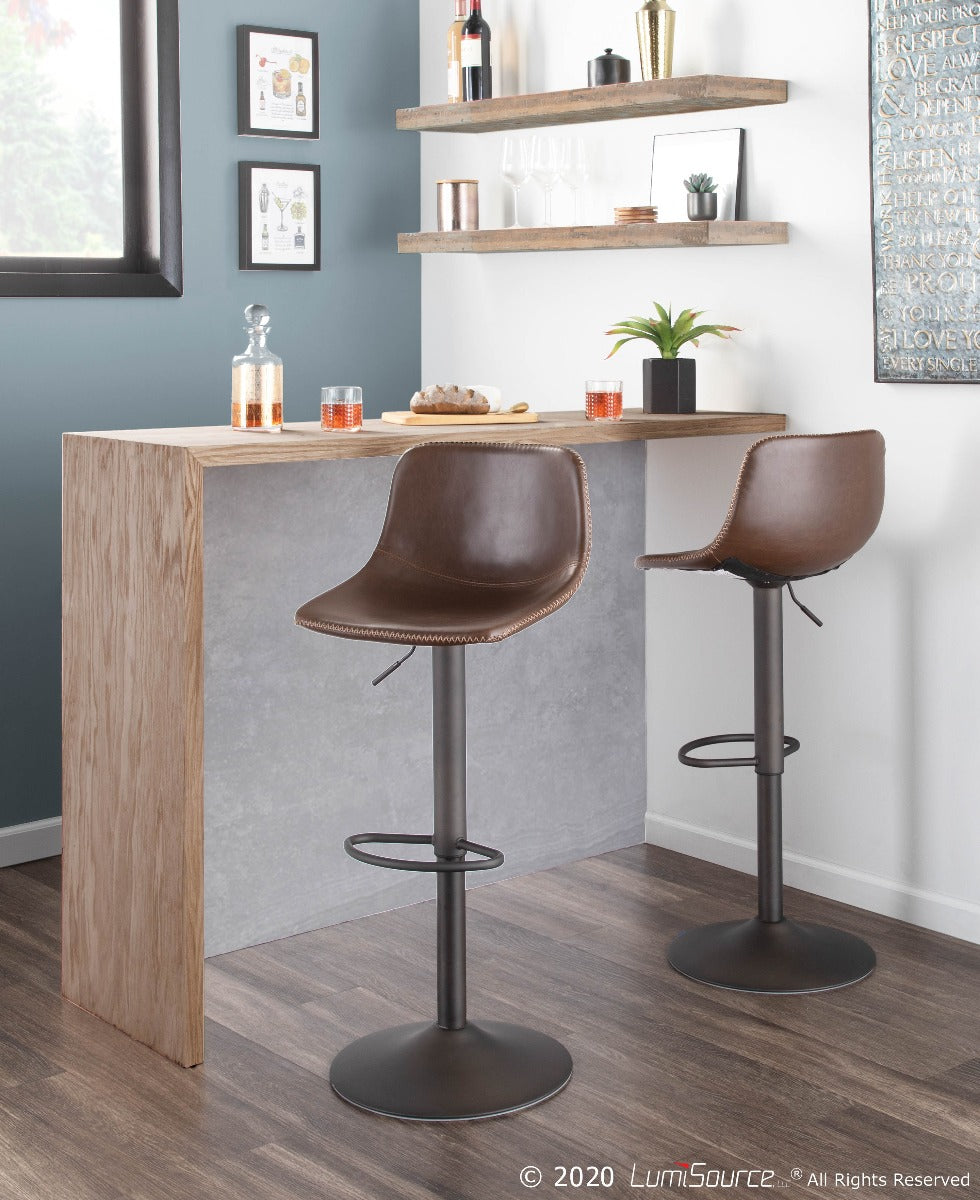 Sit in style with the industrial design of the Duke Barstool. With stylish faux leather upholstery, unique zig-zag stitching, and adjustable height, the Duke Barstool looks great in any kitchen, bar, or break room.