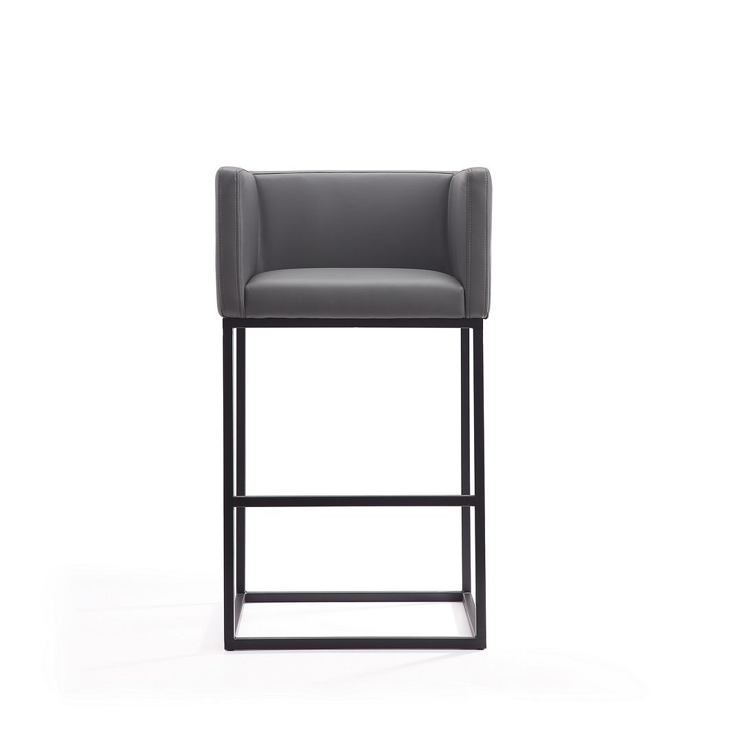 A tubular black steel frame gives our postmodern stool a machine-age reference. Its slender legs support a cushioned, tailored seat for a crisp and geometric silhouette. 21"L x 20.5"W x 38"H