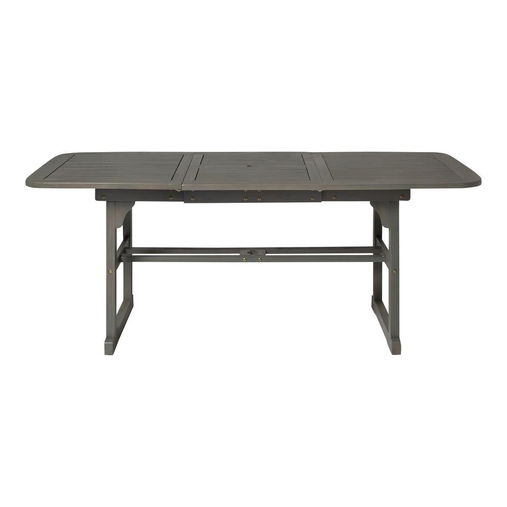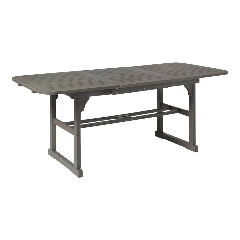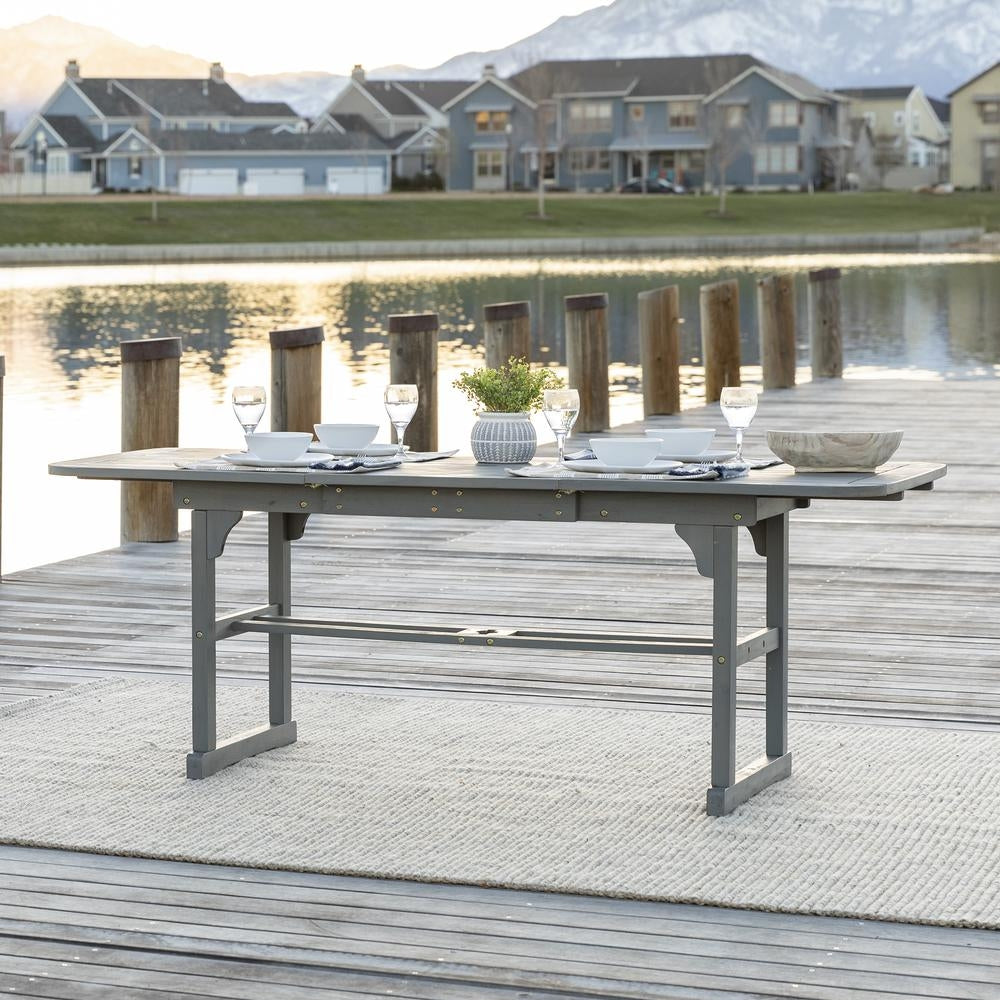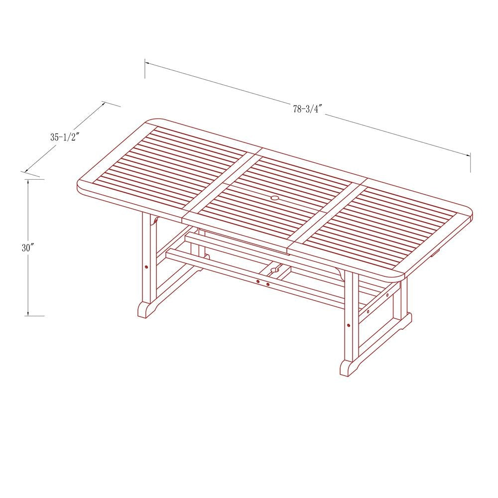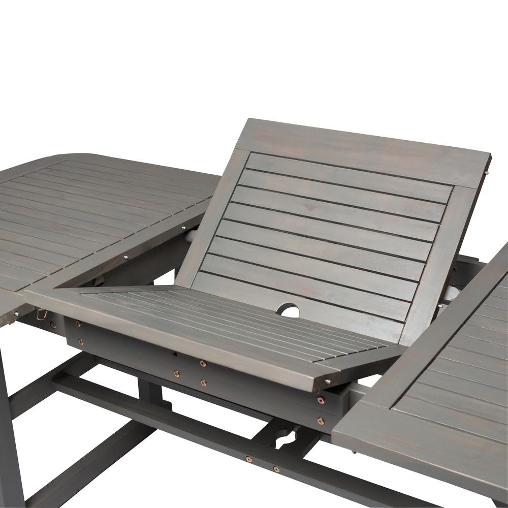 Ideal for an outdoor dining experience, this acacia wood dining table will create plenty of room needed for you and your family. With a hide-away butterfly leaf and an umbrella hole setup for you to set up your umbrella for shade on a hot summer day, you'll enjoy having this table on your patio or deck for weekend meals outside. The classic design and gorgeous wood grain finish of acacia wood create a stylish and durable outdoor table, you can rely on.