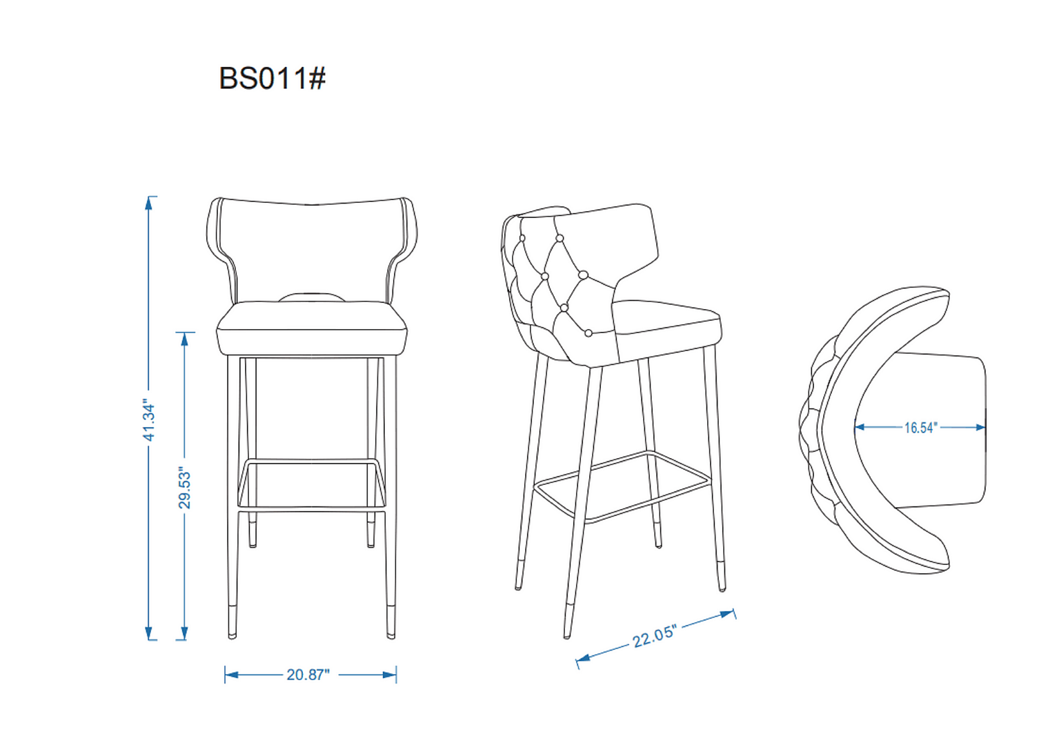 Bring lavish contemporary style with a mix of vintage elegance to your dining or lounge space, with this stool. Sleek and supple leather envelopes the low set, contoured back offering ergonomic support. Atop the Chippendale modeled legs you find an invitingly plush and cozy cushioned upholstered seat, marrying comfort and luxuriously chic style. Peek around the back and you will find a button-tufted design that radiates an upscale glam tone. The mid-century inspiration meets clever modern design in this lounge stool. 20.87"L x 22.05"W x 41.34"H