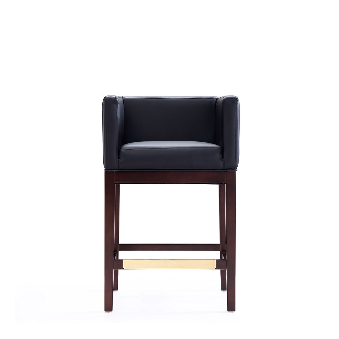 Tight back squared frame upholstery in leather with high density foam, this counter stool brings you comfort and class with it sleek design and gold metal footrest. 21"L x 19.5"W x 34"H