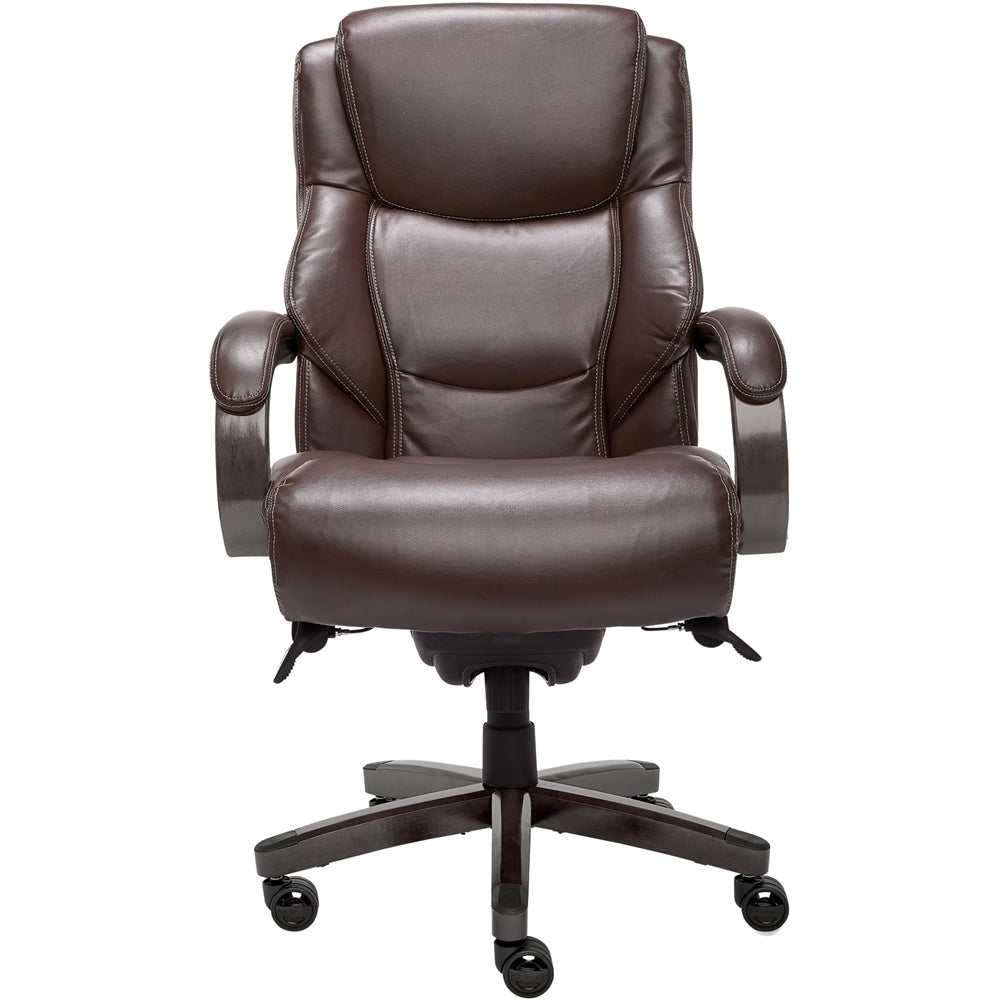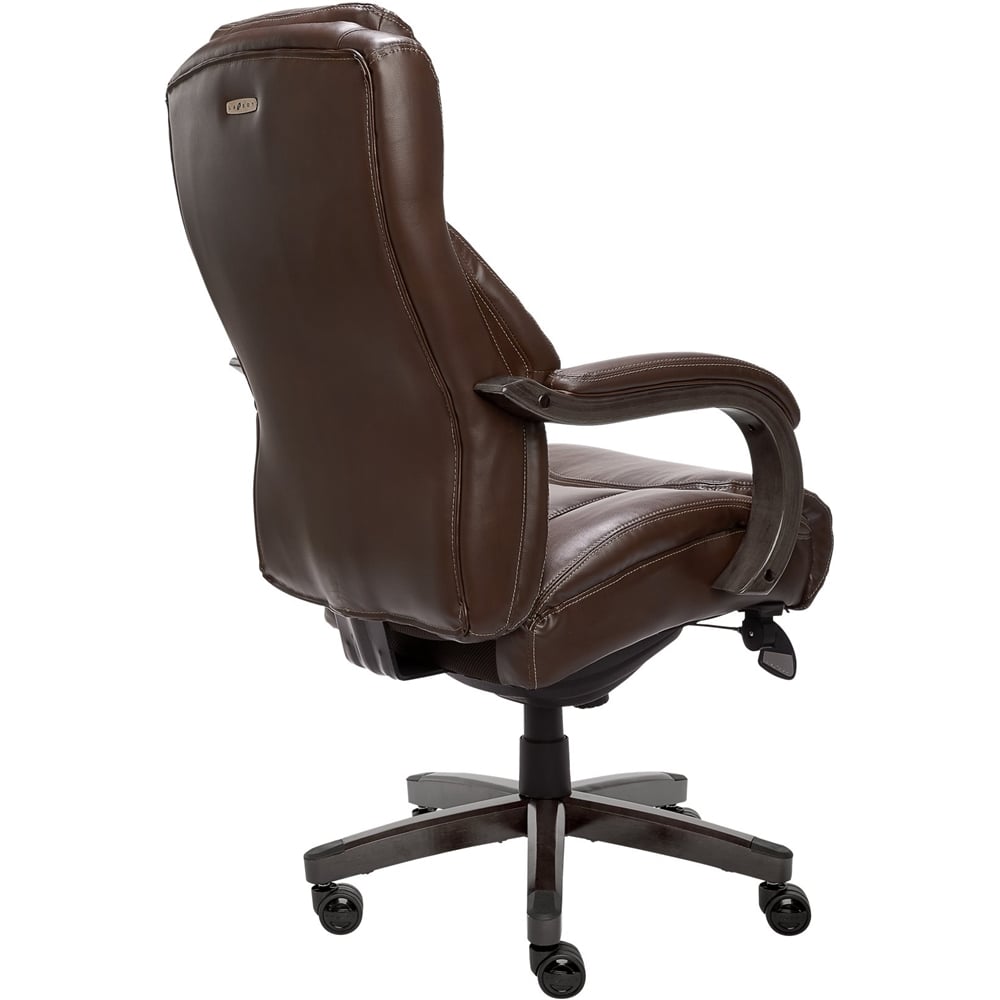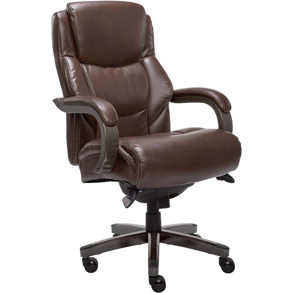 Live life comfortably with La-Z-Boy office chairs. Founded on the principles of comfort, innovation, and industry-leading craftsmanship, La-Z-Boy still holds these values true today at the heart of every chair we design and build. The La-Z-Boy Delano is a Big and Tall high back Executive Office chair designed to bring premium comfort and support to your home or office. Upholstered in soft bonded leather with hand-sculpted real wood arms and base, this desk chair creates an elegant blend of traditional style and modern performance that will lift any office, home or entertainment space. This comfortable office chair has a contoured back lumbar panel and an advanced Memory Foam cushion layering system to give comfort and support in the areas you need it most. Ergonomic and adjustable, this La-Z-Boy office chair allows you to control the height, tilt and lift to suit your sit positioning and give you an optimized body alignment. La-Z-Boy office chairs are designed to put your comfort first with quality that
