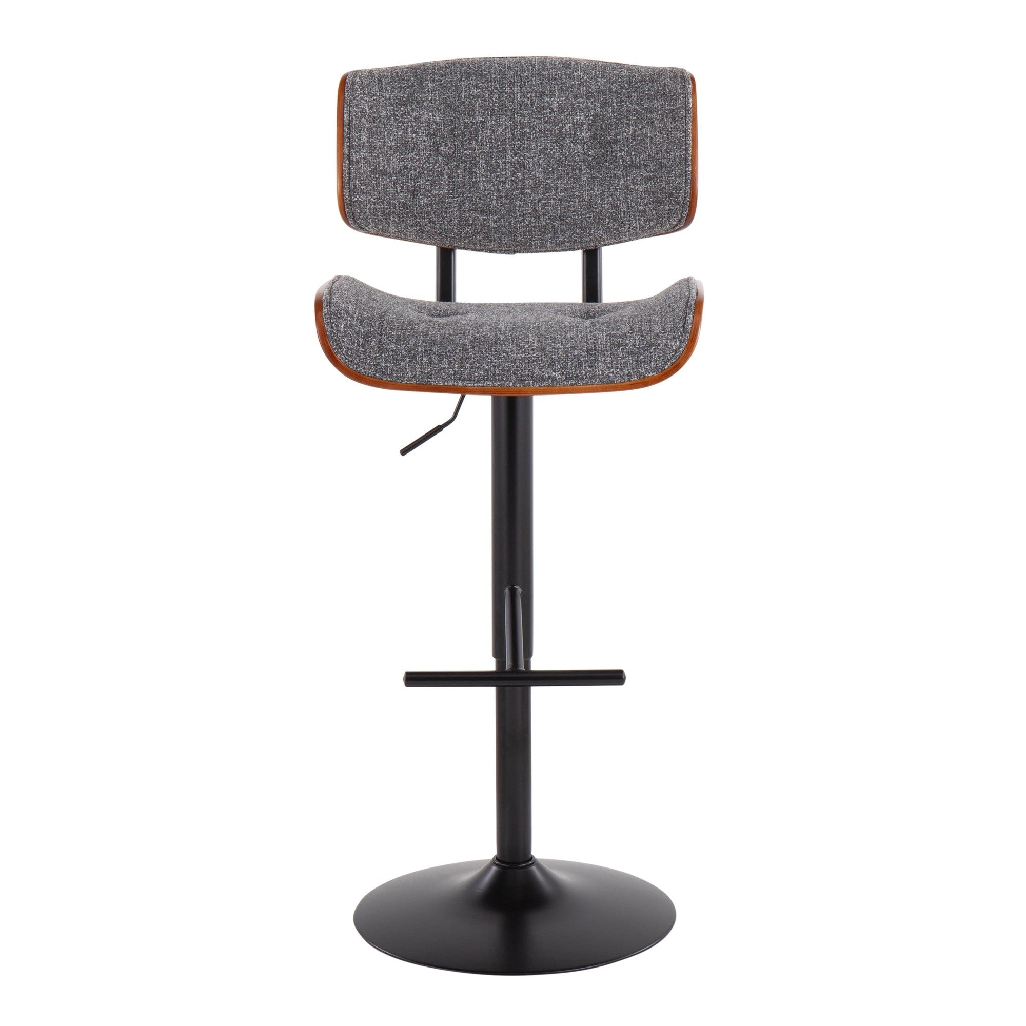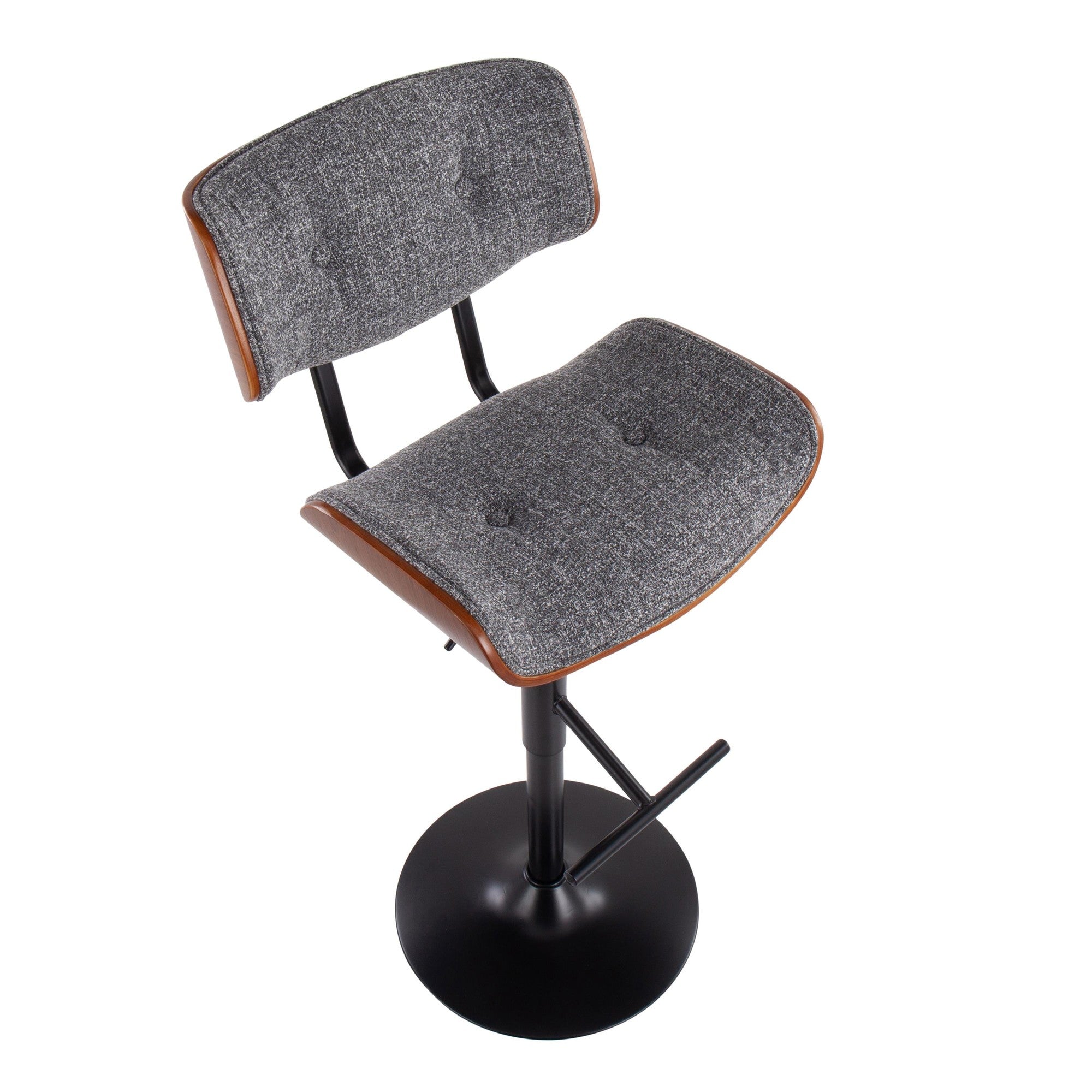 Add mid-century flair to your bar or counter area with the LumiSource Lombardi Barstool. Enjoy the plush tufted fabric seats and backrest over bent wood providing optimal support and comfort. The Lombardi adjusts to your preferred height and swivels 360 degrees. Available in various upholstery, wood, and metal finishes, choose the color that suits your space best.