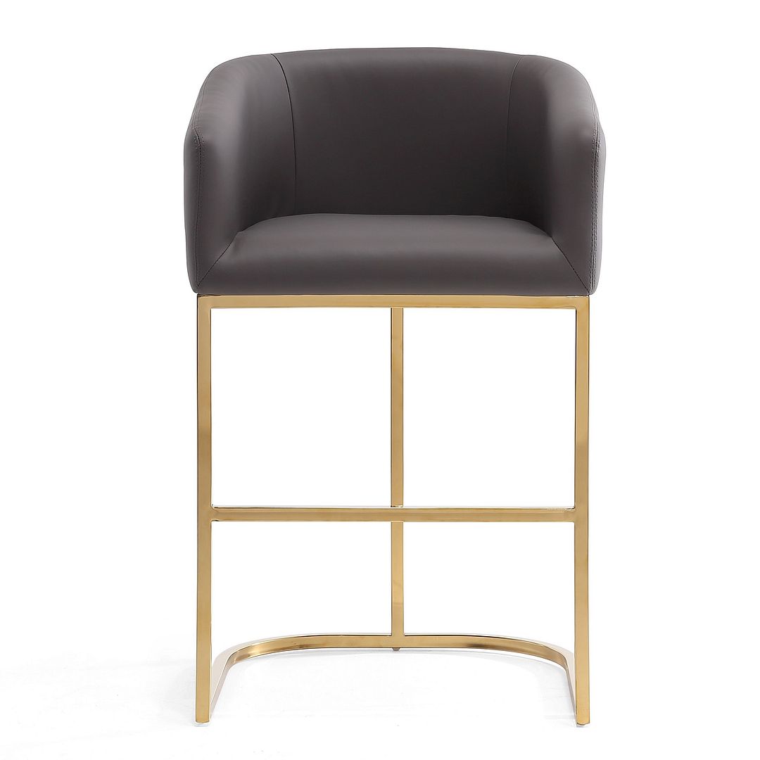 A hint of mid-century modern style that brings the chic and elegant flair to any home's decor. This stool is all kinds of wonderful. A clean-lined, curved, and comfortable seat, sits atop a shimmery gold semi-circle pedestal base. A metal footrest finishes the look, bringing added comfort to the leather-upholstered piece. Gorgeously well-served, in a perfect neutral tone for that touch of warm texture. 21"L x 20"W x 40"H