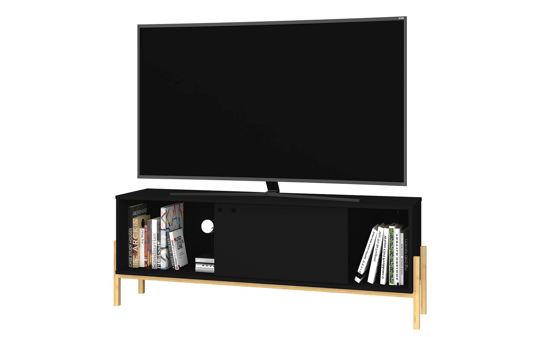 Manhattan Comfort Bowery 55.12 TV Stand in Black and Oak