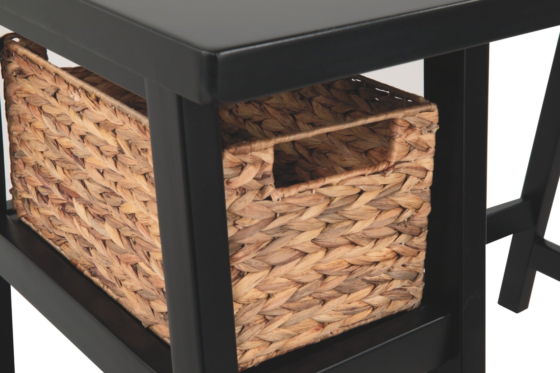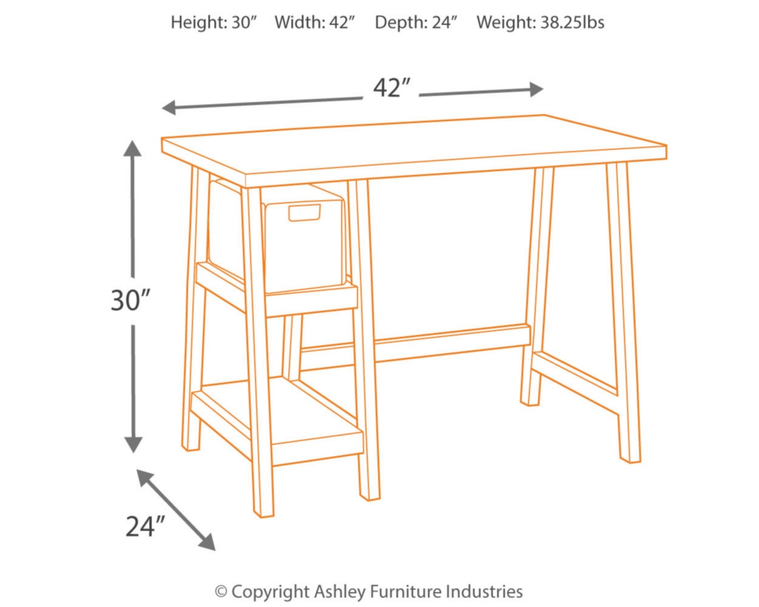 Space-challenged rooms call for simply chic style: like this small home office desk in black. Clean and lean, this desk’s classic trestle design always works. Pair of open shelves and natural water hyacinth basket provide essential storage.