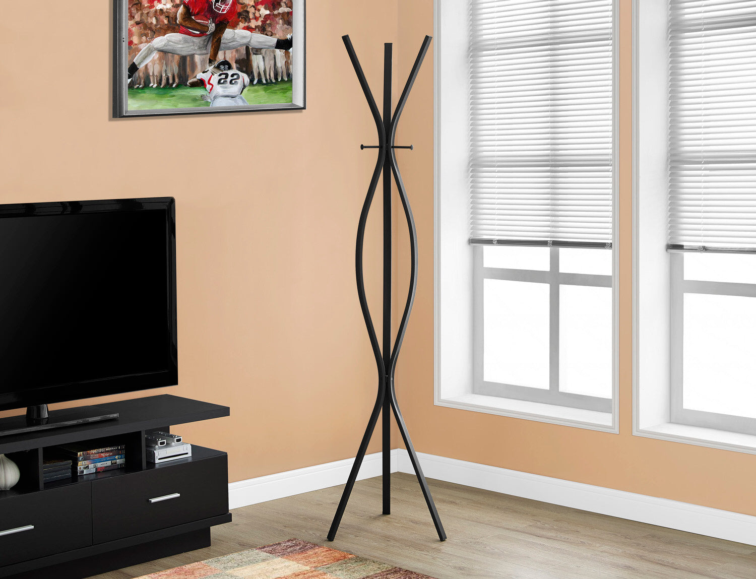 Complete the functionality of your home with this contemporary coat rack. Beautiful 72" high black metal legs provide sturdy support and bring plenty of stylish storage into your living space. This coat rack makes it simple to organize your entryway, hallway or living room. A modern and chic look complete its stylish appeal.