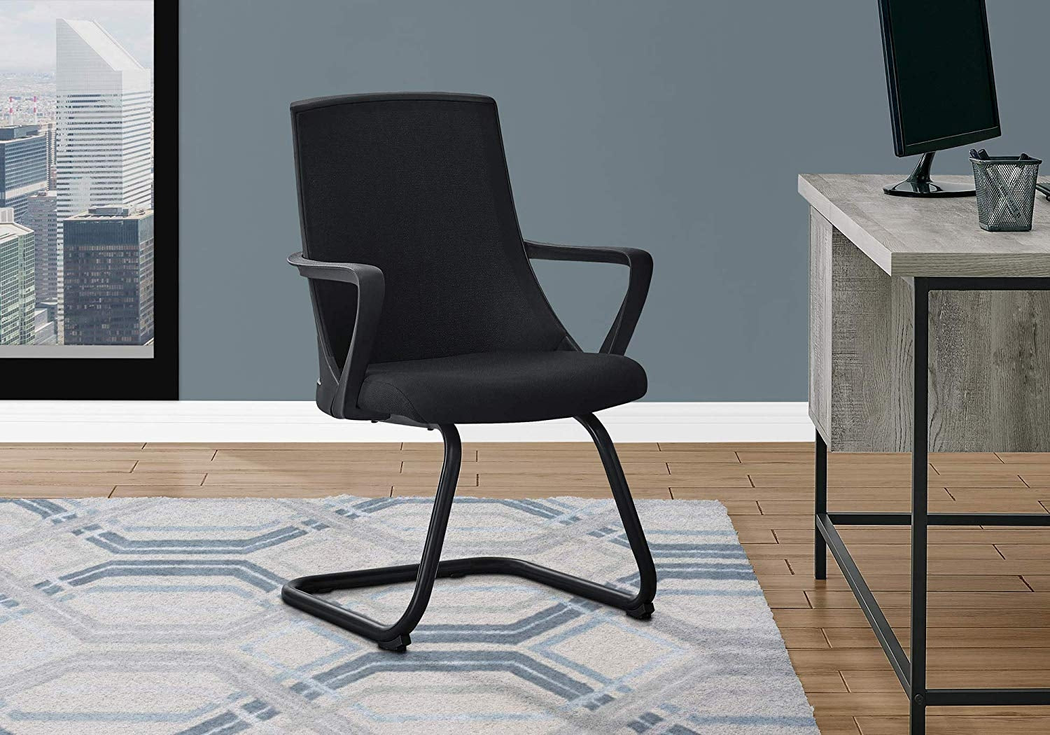 Revive your waiting room, reception area or office space with this contemporary, retro-inspired guest office chair. This BIFMA certified, curved mid-back office chair is upholstered in durable and breathable mesh fabric in a sleek black, with perfectly positioned arm rests offering supreme comfort. The u-shaped black metal base gives firm stability. Your visitors will feel so good in this guest chair, they may never leave your office! Assembly is required.