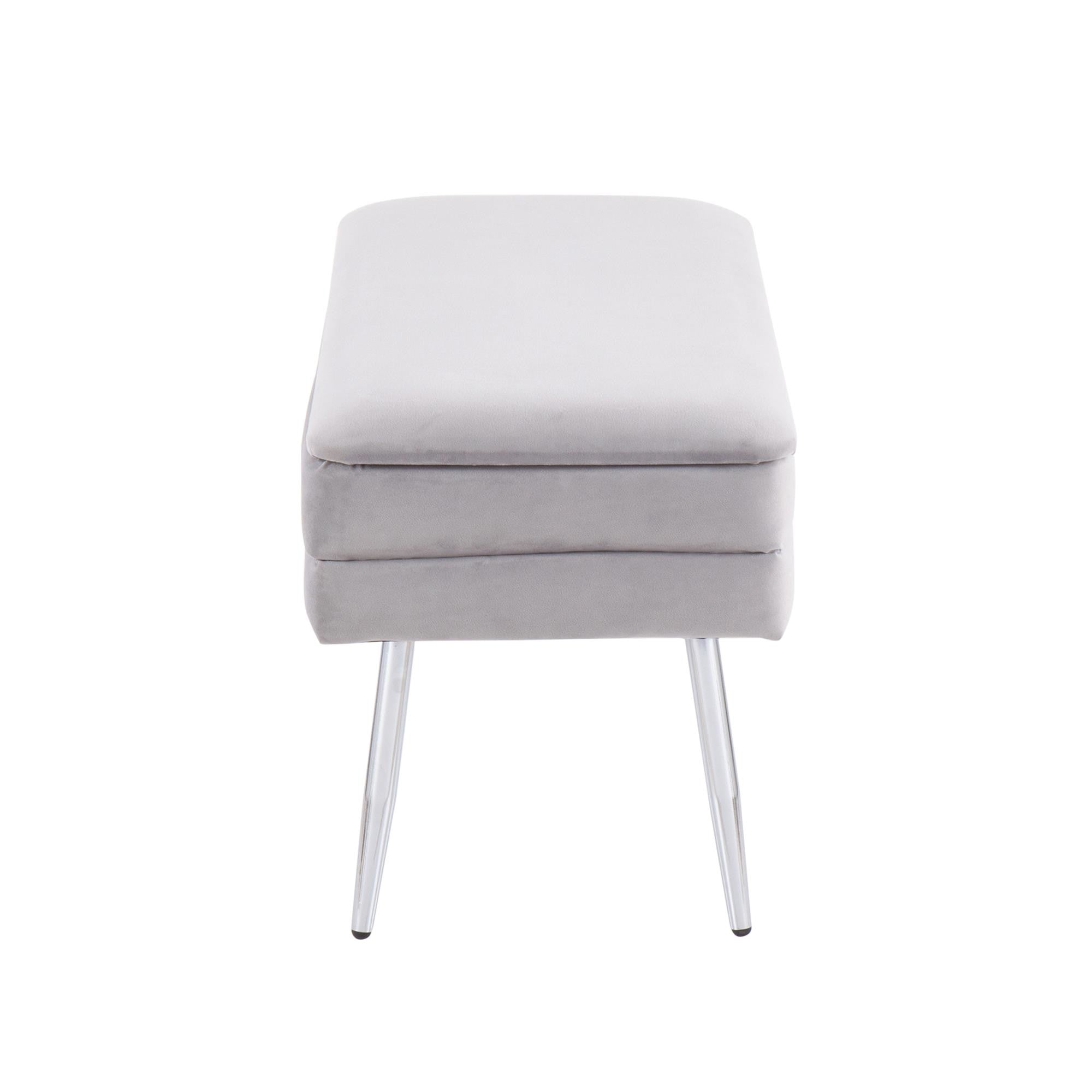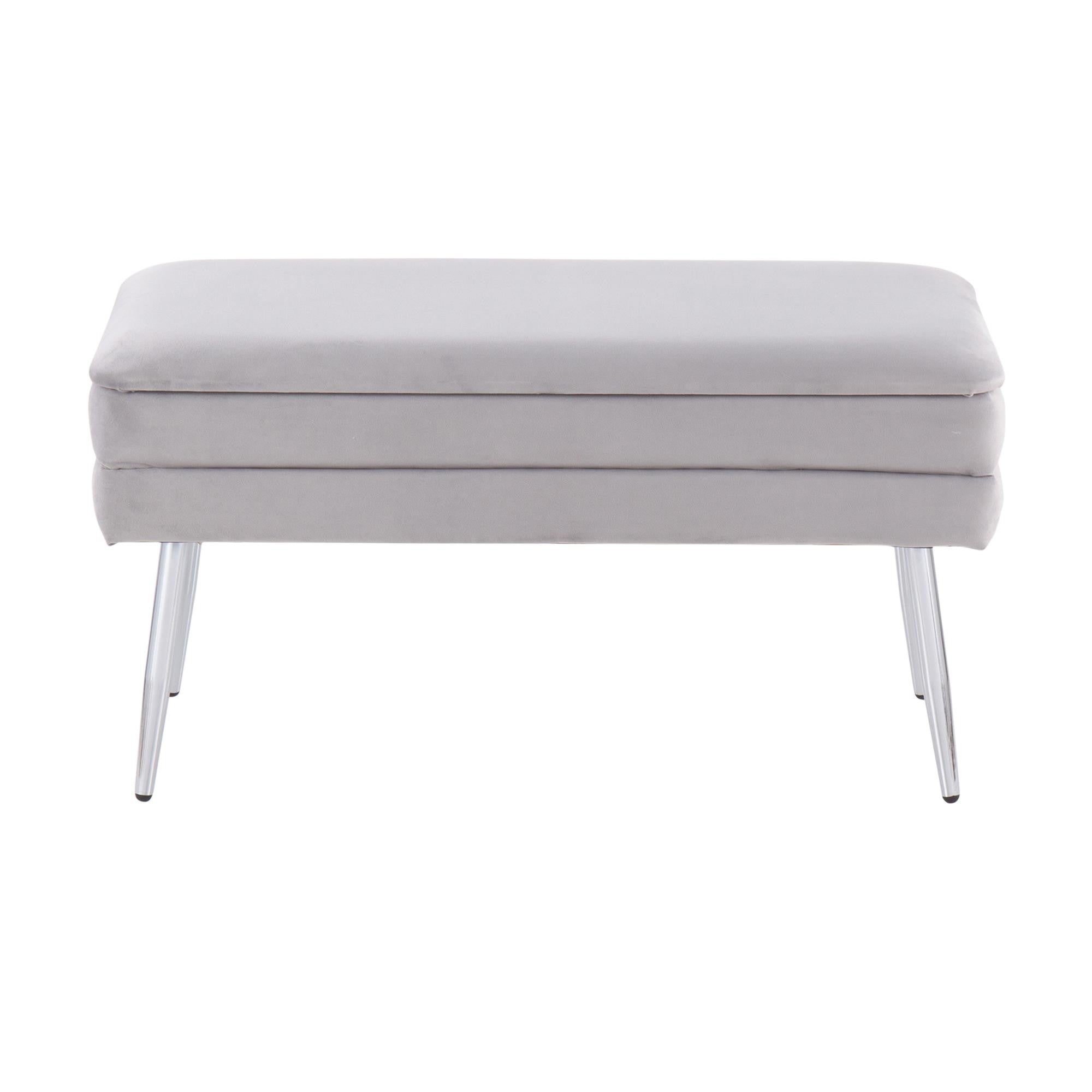 The Neapolitan Storage Bench by LumiSource provides convenient storage along with a stylish look. Perfect for extra seating, an entryway, or at the foot of a bed, this bench features silver metal legs and plush velvet upholstery. Open the removable lid to find a roomy storage area where you can conveniently hide magazines, remote controls, and anything else you want to keep out of sight.