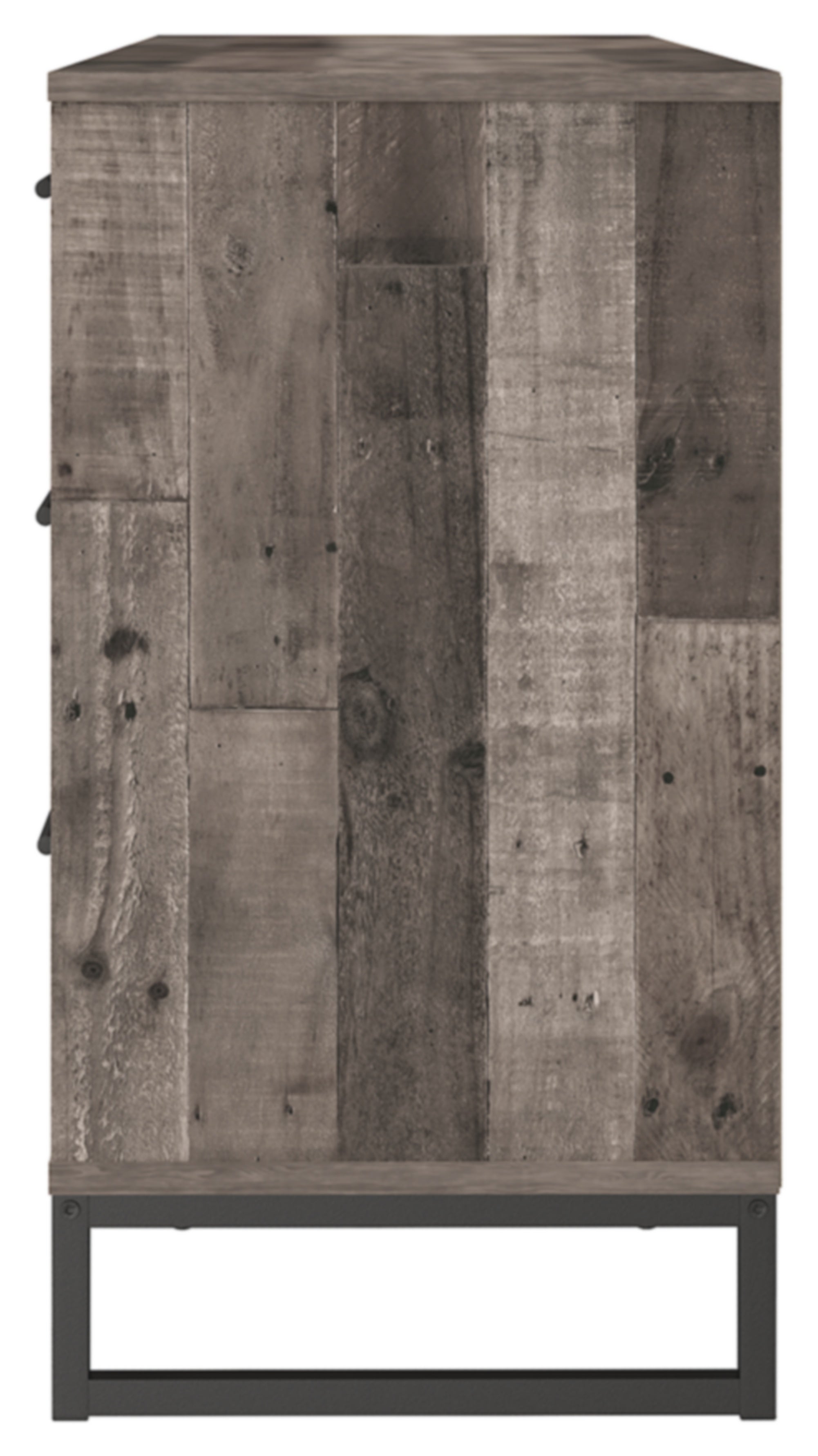 Streamlined design and a stunning two-tone finish come together in one simply extraordinary piece. The Neilsville dresser is sure to impress with six smooth-operating drawers, canted metal legs and rich brown finish over replicated pine grain texture. Its mid-century style is a nod to the past, while the updated finish keeps it solidly in the present.