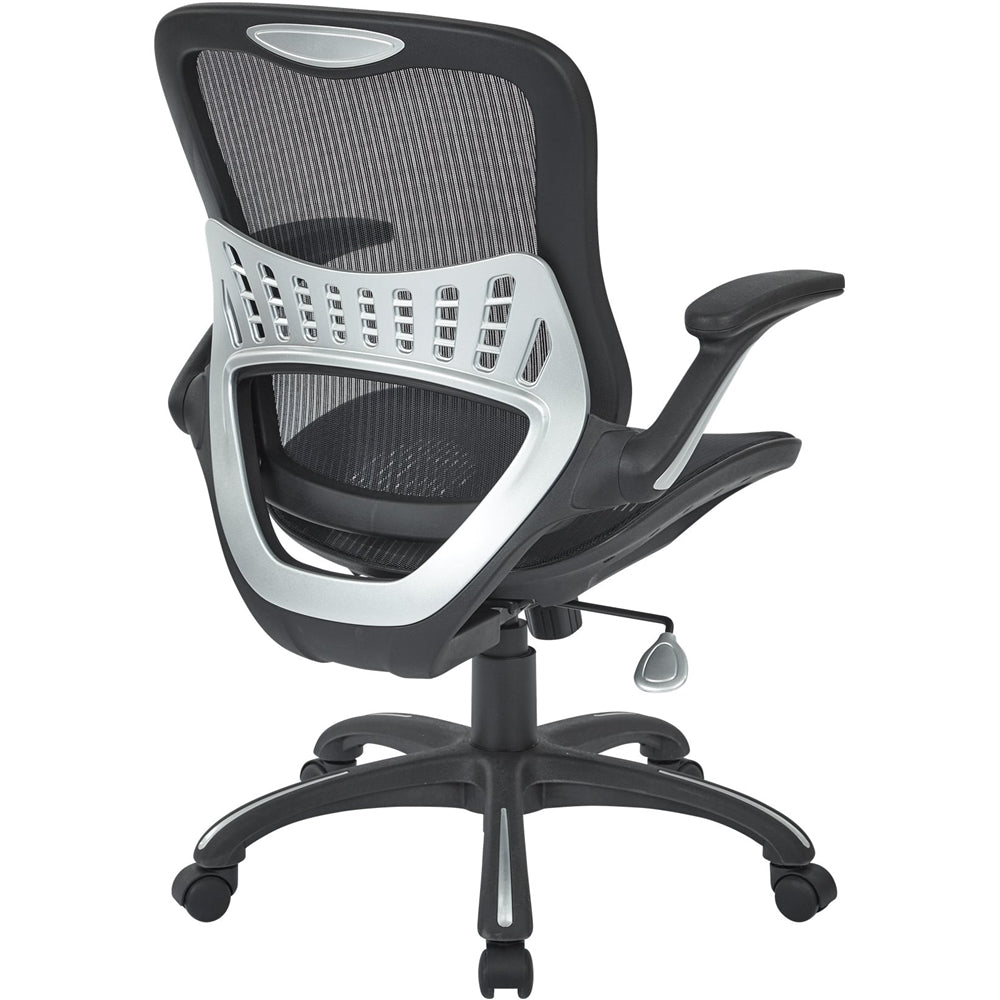 Get inspiration for your next business idea while you relax in this Office Star manager's chair. A mesh back and seat provide cooling ventilation, and the built-in lumbar support keeps you comfortable during long days at the office. Featuring locking tilt control and pneumatic seat height adjustment, this Office Star manager's chair is conveniently customizable.