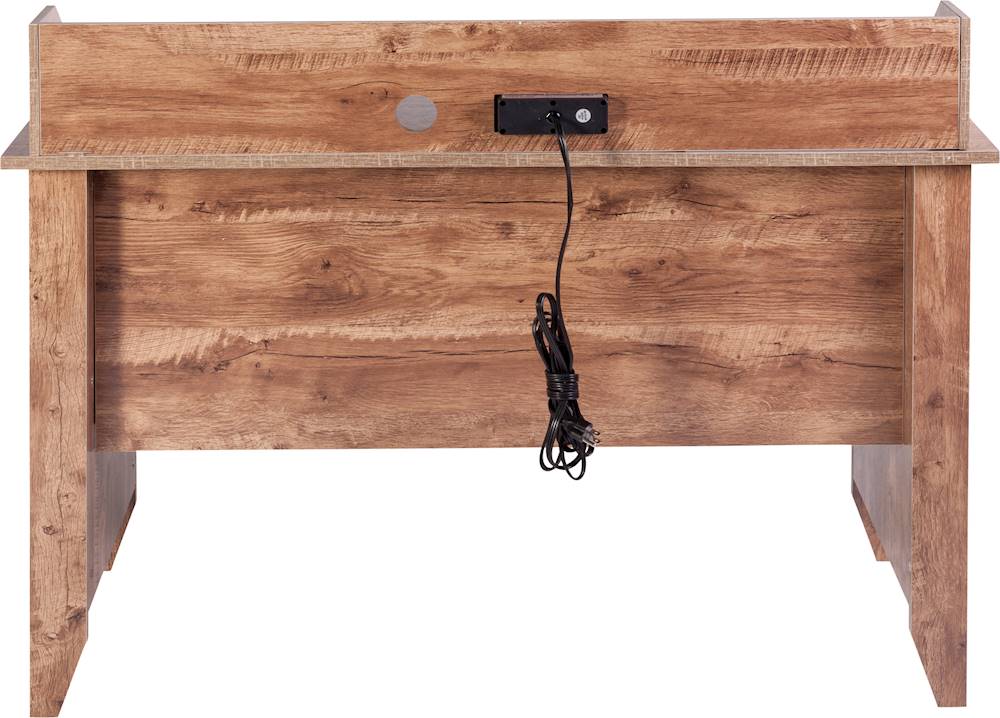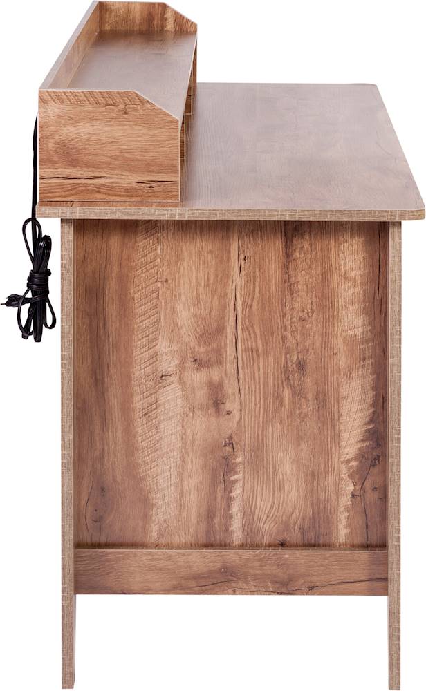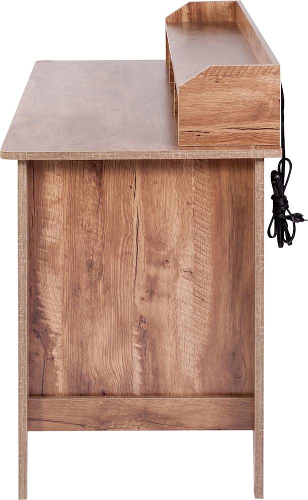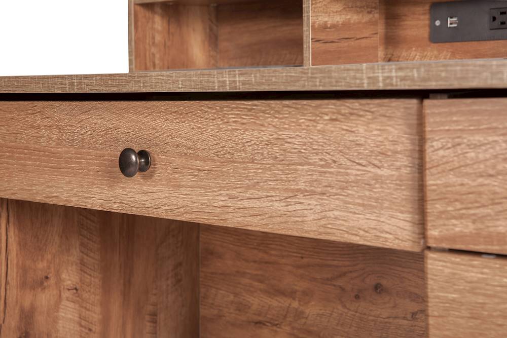 Enjoy versatility with this OneSpace Eleanor executive desk. The large hutch has cord and wiring access for connecting devices, while the built-in USB and charger hub support convenient plug-in access. Two slide-out drawers provide additional storage space to help free up desk space. This OneSpace Eleanor executive desk has an oak laminate finish for style.