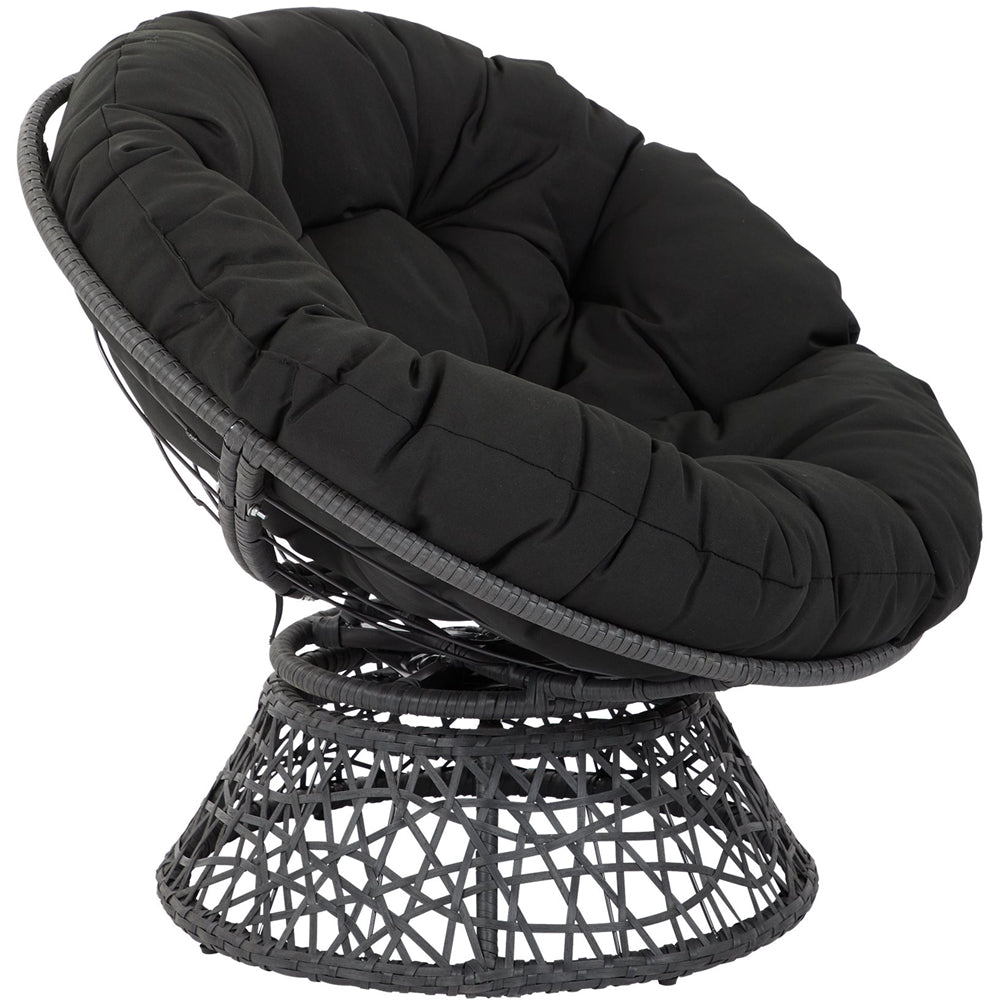 Delight in in the welcoming embrace of this classic OSP Papasan chair. A robust steel frame with a woven polypropylene wicker cover ensures stability and longevity, while a 360-degree swivel lets you change positions effortlessly. This OSP Papasan chair features a tufted cushion with a polyester cover for comfort and ease of maintenance.