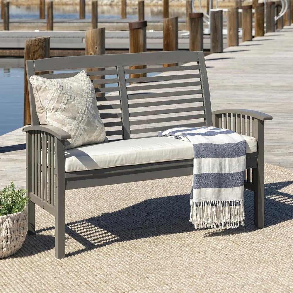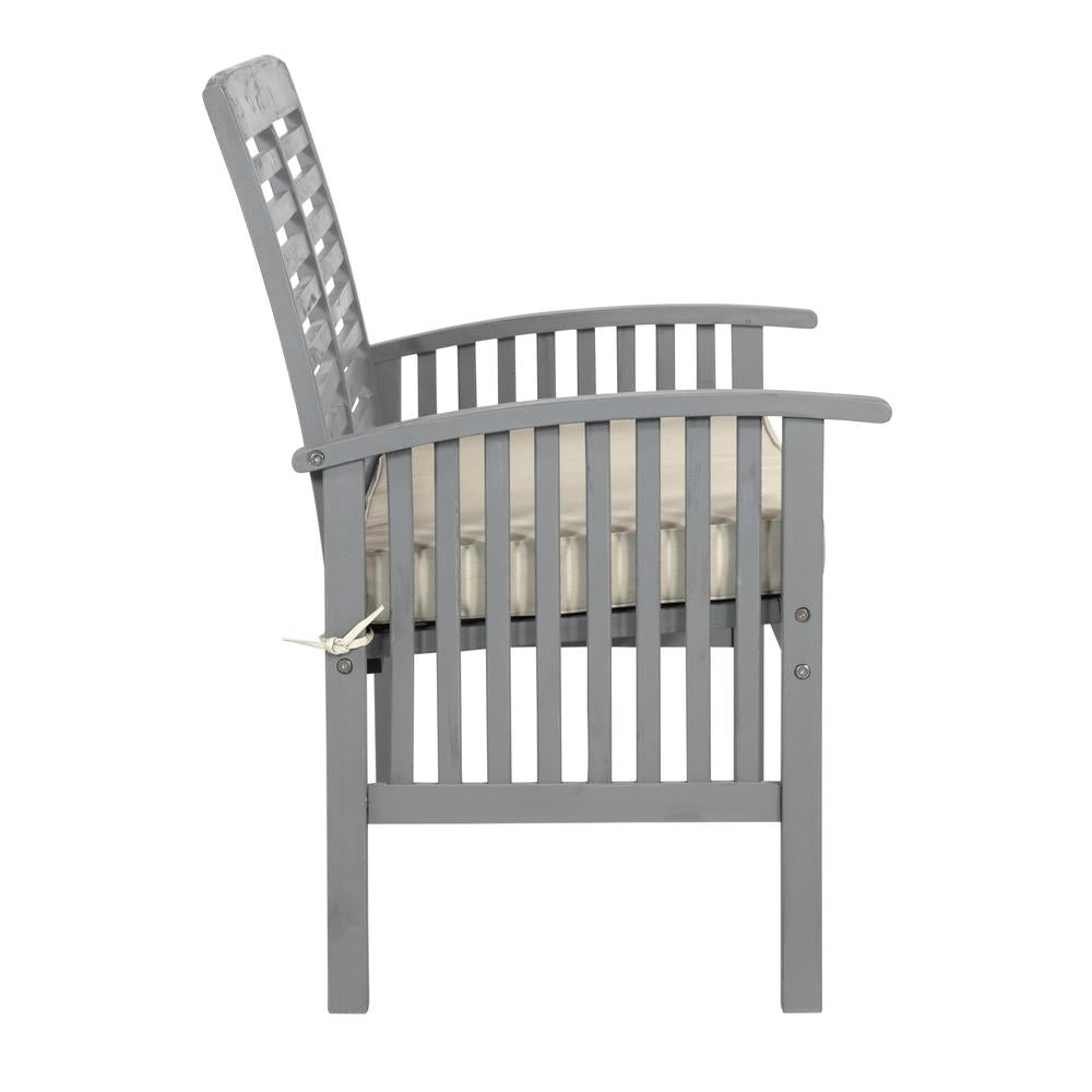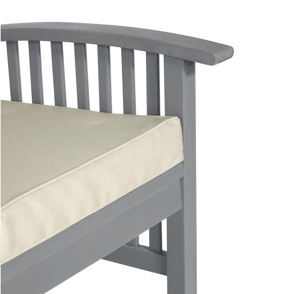 Provide additional seating on your deck, patio or garden with this Acacia Wood Patio Loveseat. The solid acacia wood frame is both durable and weather resistant, while the polyester cushions provide comfortable seating that will last you for summers to come. Pair it with our matching coffee table and chairs for a complete conversation set, so you can enjoy the ultimate BBQ party. Or, relax on the outdoor loveseat with your morning breakfast or nighttime snack.