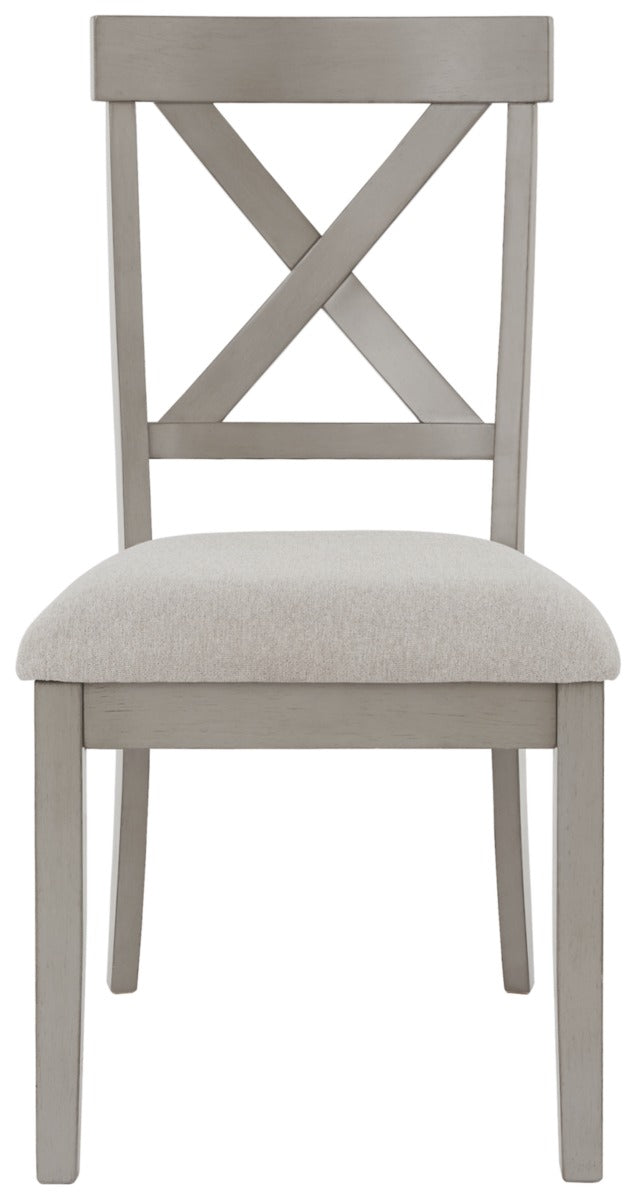 Bring a relaxed yet refined sense of good taste to a space with this wonderfully comfortable dining chair. Clean-lined frame sports a gray finish that’s so easy on the eyes. Covered in a complementary textured beige fabric, the chair’s cushioned upholstered seat goes easy on the body. And with classic X-back styling, this chair is an inspired choice for modern farmhouse living.