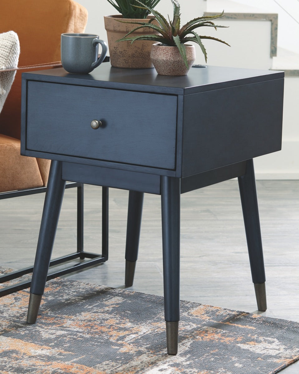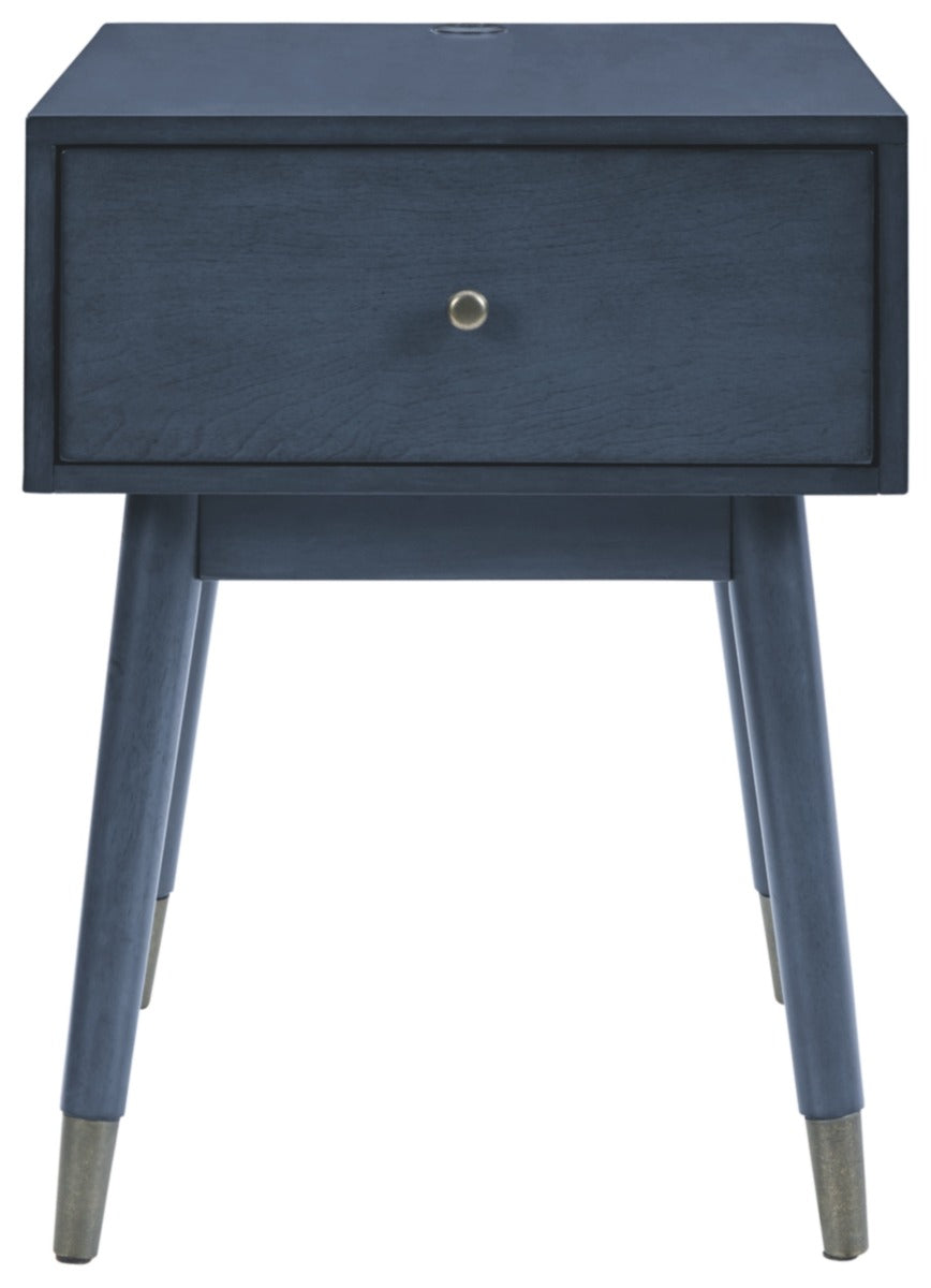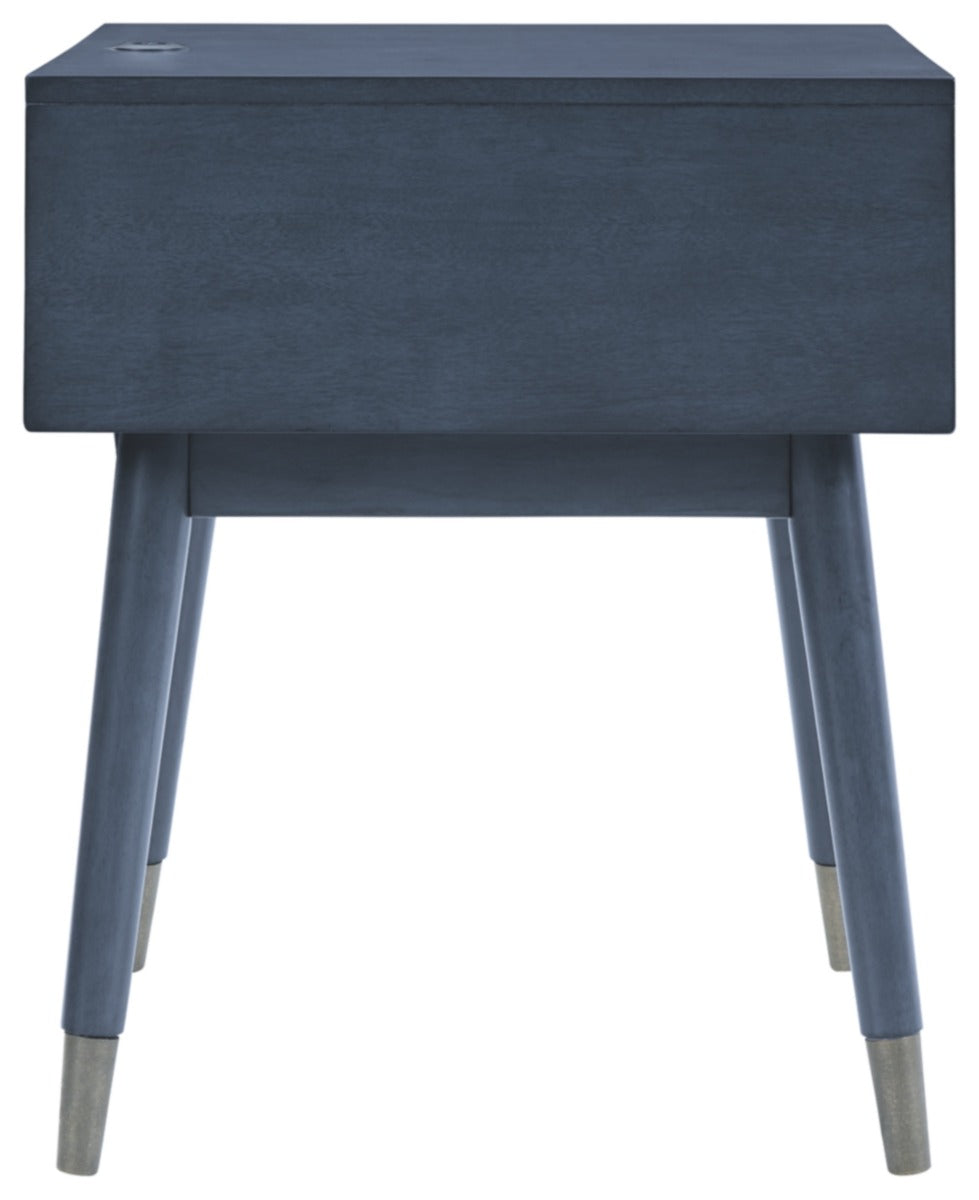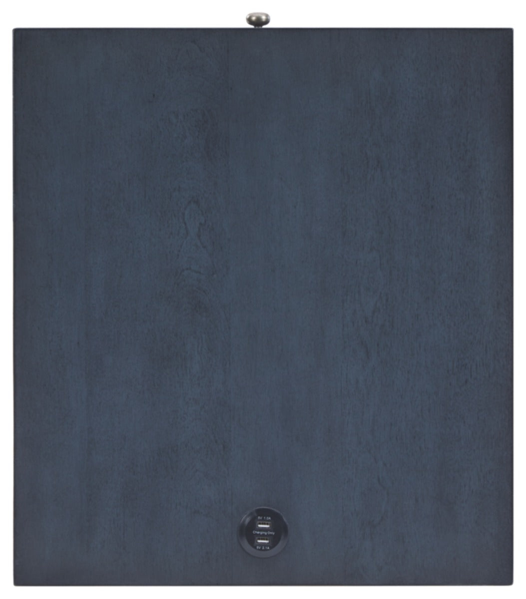A study in seeming contradictions, this accent table is both practical and stylish. A storage drawer lets you keep necessary items in reach while out of sight, and two USB ports keep your devices powered up as you wind down. The clean lines and antique blue finish give this piece a high-design profile to elevate your space.