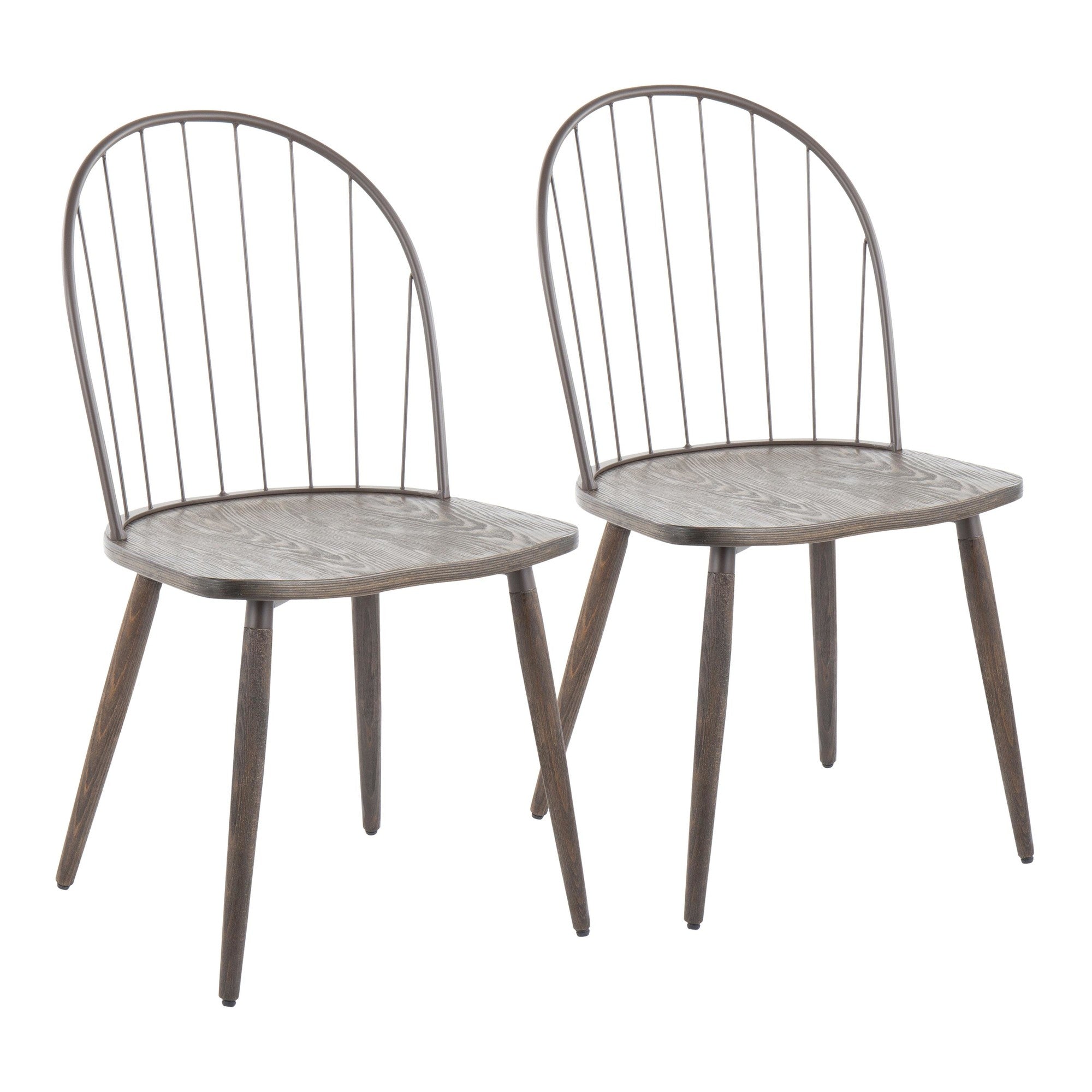 Bring industrial style to your dining room with the Riley High Back Chair by LumiSource. Our updated take on a traditional spindle-back chair, the Riley High Back Chair has a wood seat and legs complimented by a metal spindle backrest. The perfect chair for a dining table or extra seating, available in a variety of color options.