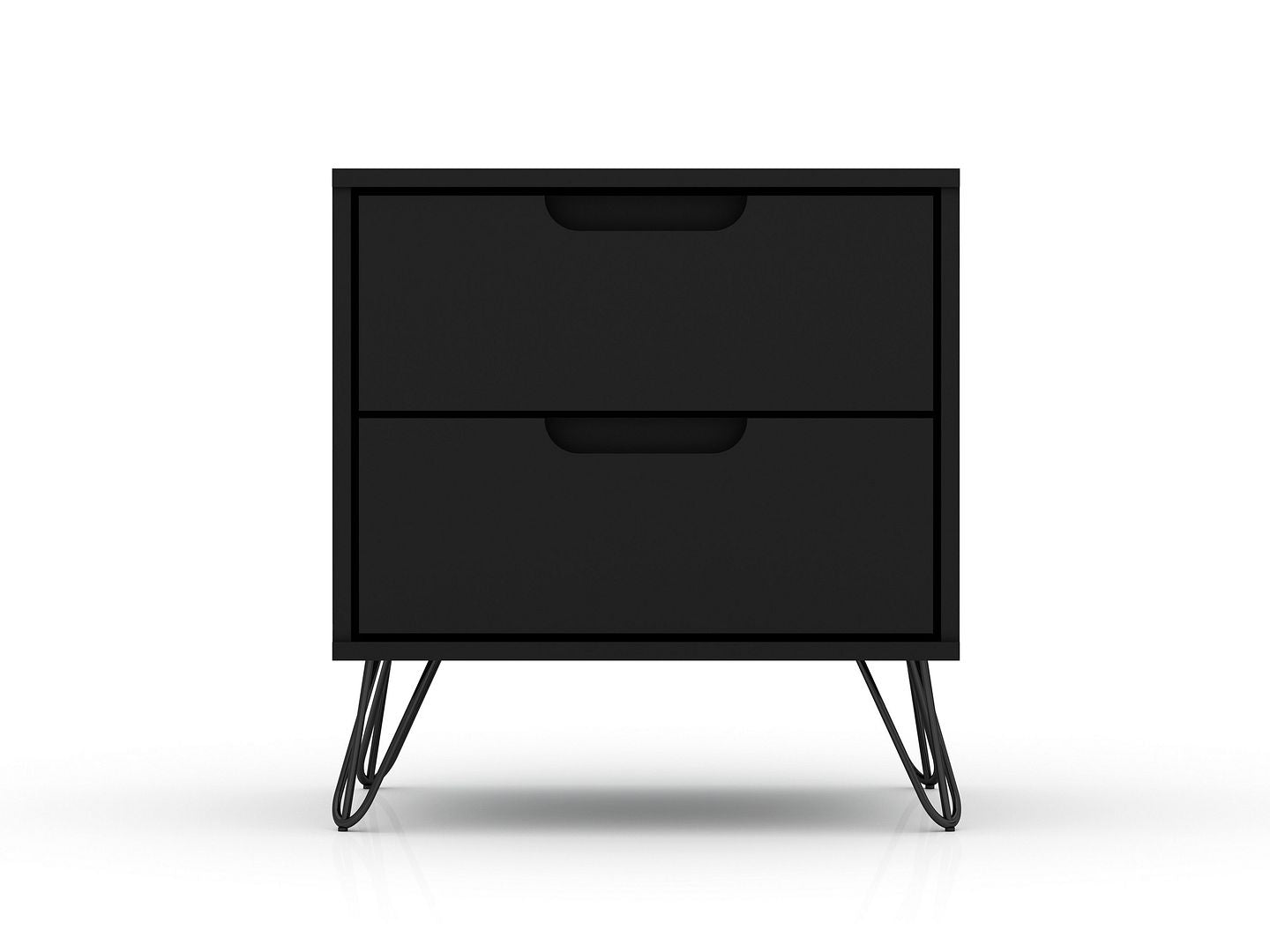 The Rockefeller nightstand is the perfect bedside table, with two drawers that are ideal for tucking away personal items, tablets, books, and beyond. Versatile in design with Mid-Century clean lines and modern splayed metal legs, this piece blends well with any existing decor and can be used from space to space. 20.08"L x 17.62"W x 21.65"H