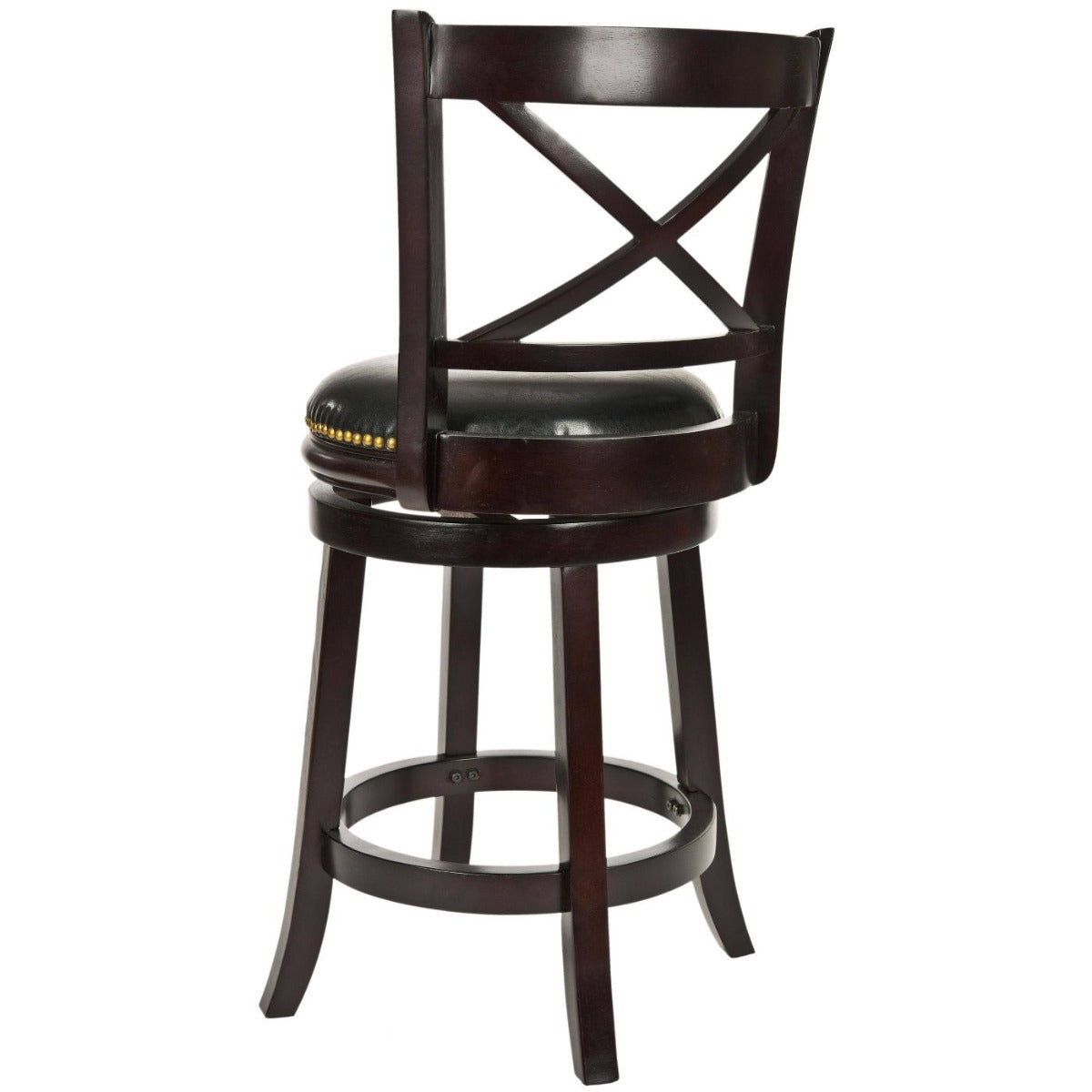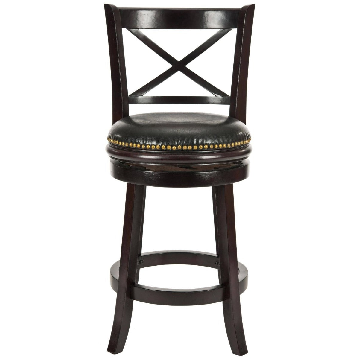 The Butler Counter Stool gives traditional styling an update with a crisscross back and gently curved legs of Malaysian Oak with a rich cappuccino finish. The well-padded swivel seat’s cushion is covered in black bi-cast leather and accented with nail head detailing. With a 24-inch seat height, Butler will be perfect for your counter or pub table.