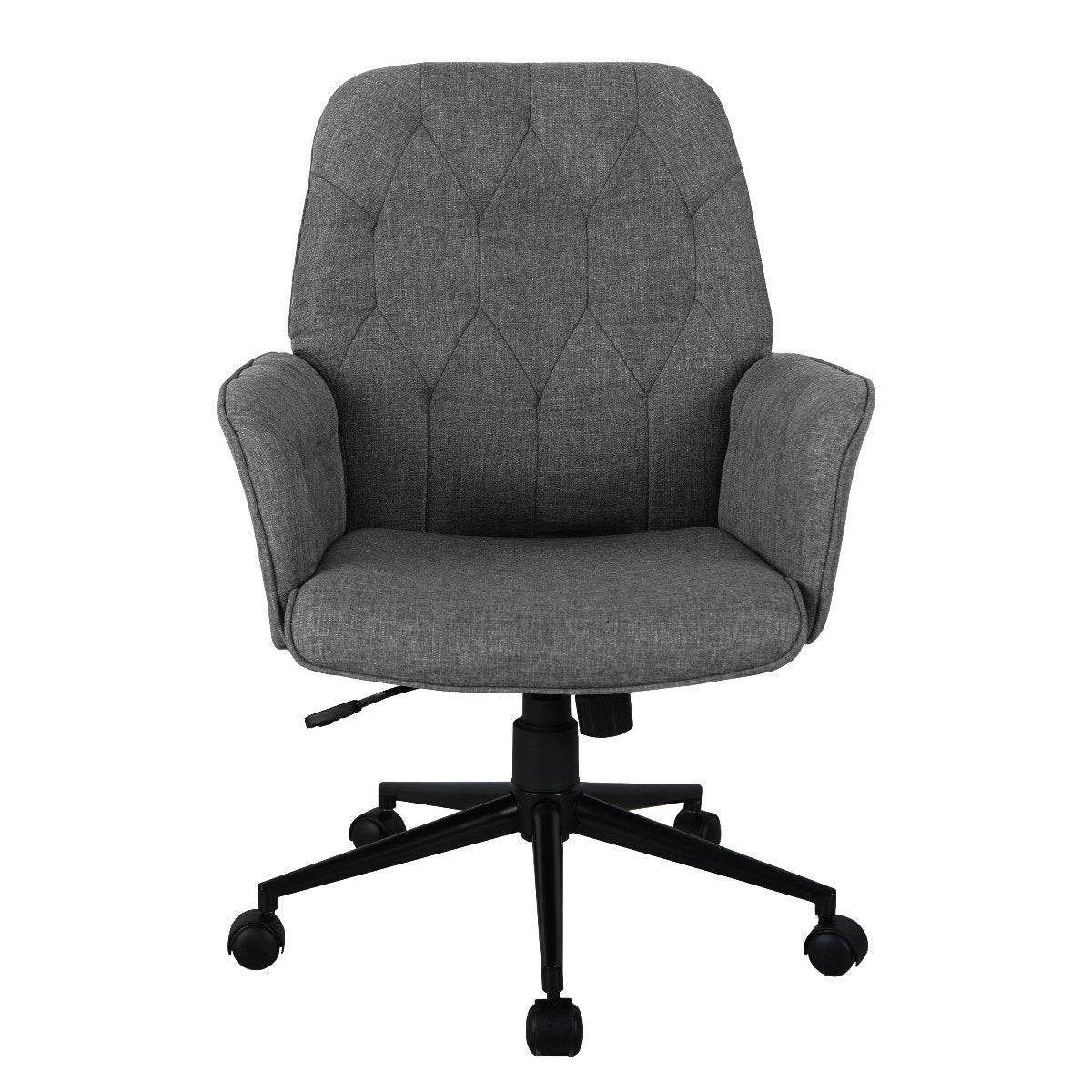 The Techni Mobili Modern Upholstered Tufted Home & Office Chair with armrests features 5-star steel base, non-marking casters, pneumatic seat height adjustment and tilt with tension control mechanism. Its foam-filled fabric with polyester blend upholstery boasts tufted detailing for an inviting feel, while the clean lined silhouette along the seat with recessed arms complete the traditional look. It comes with 2-year limited warranty and weight support up to 250 lbs.