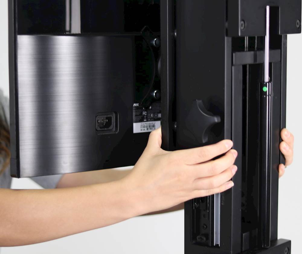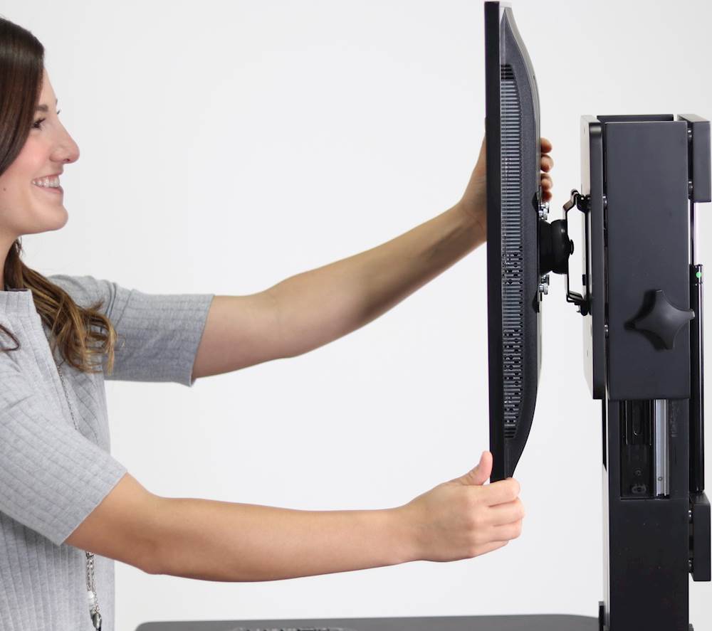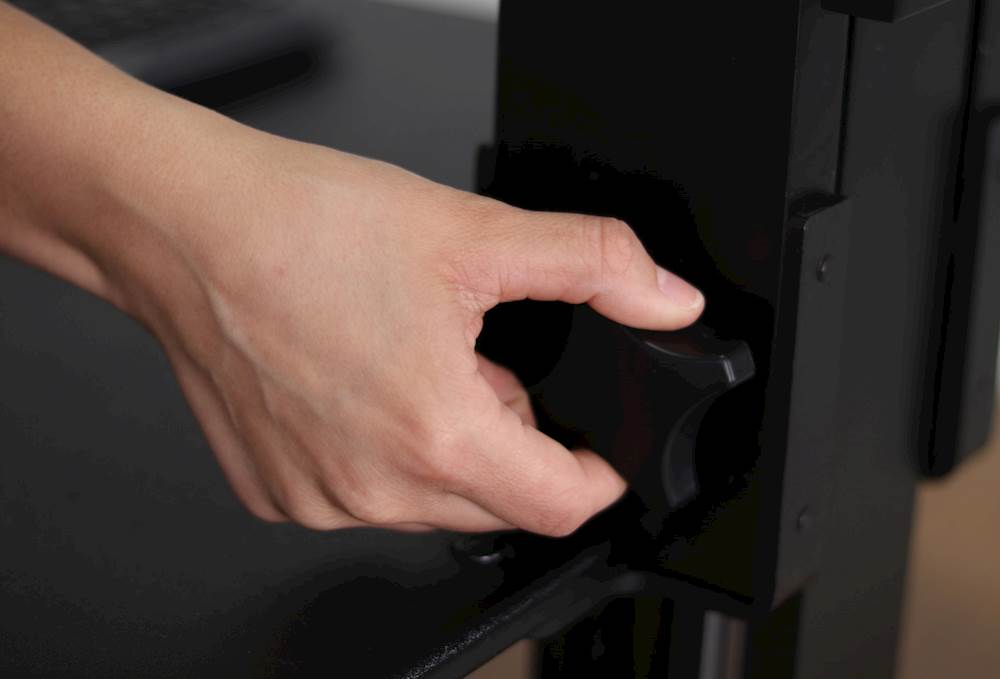 Gas strut designEasily raise or lower both the desk surface and computer monitor independently with the help of gas struts.