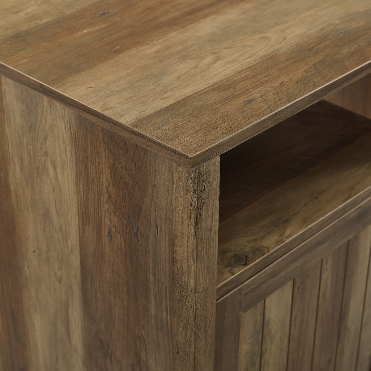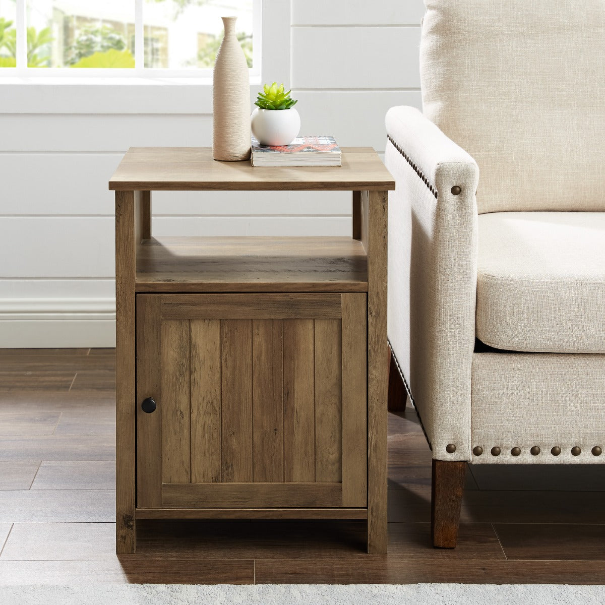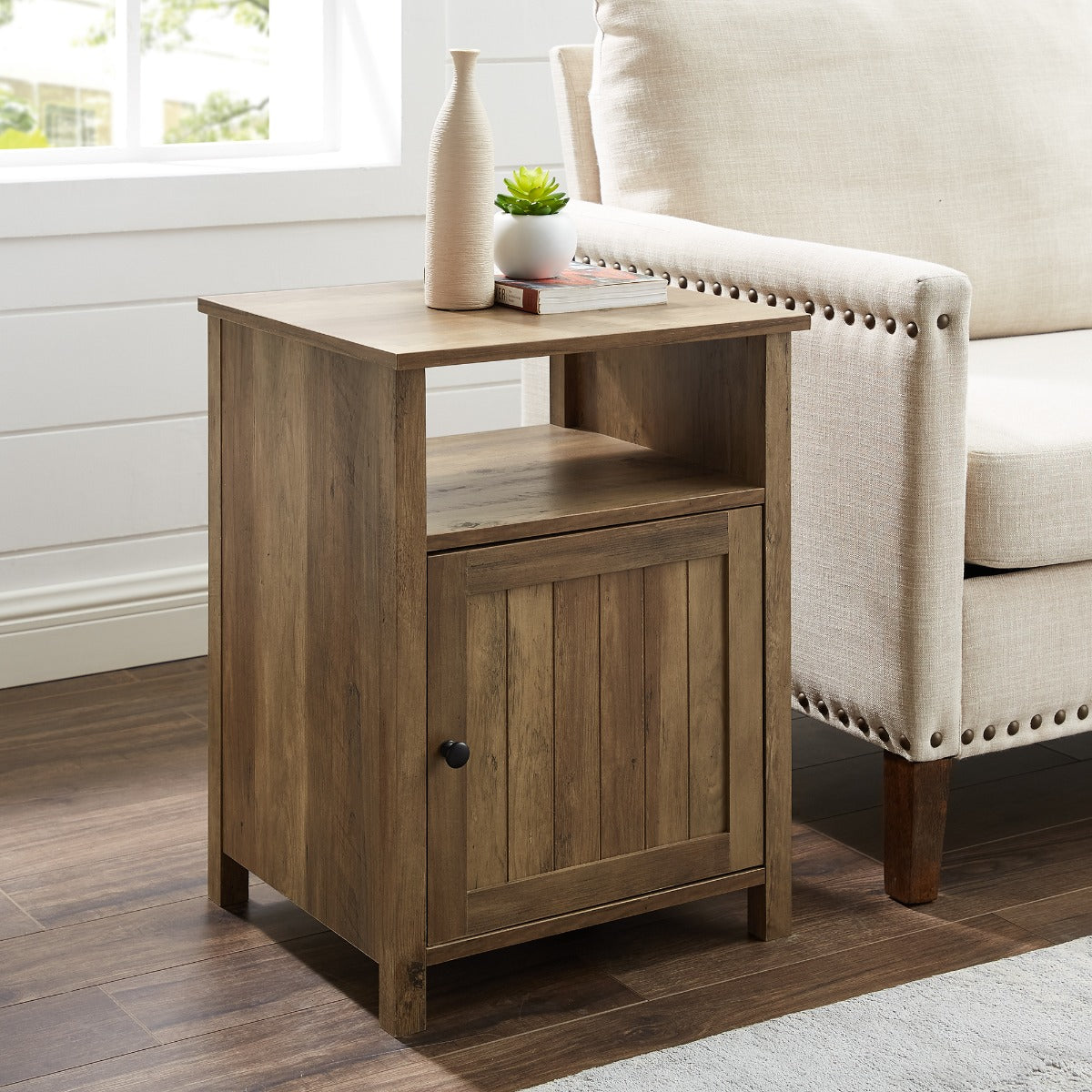 Keep life simple with this grooved door side table. An open cubby rest at the top of the unit, which provides a great place to store electronics, small boxes, or other accessories. The bottom of the end table has a door with soft close hinges. Create a coastal, farmhouse, or traditional tone in your living room in a snap!