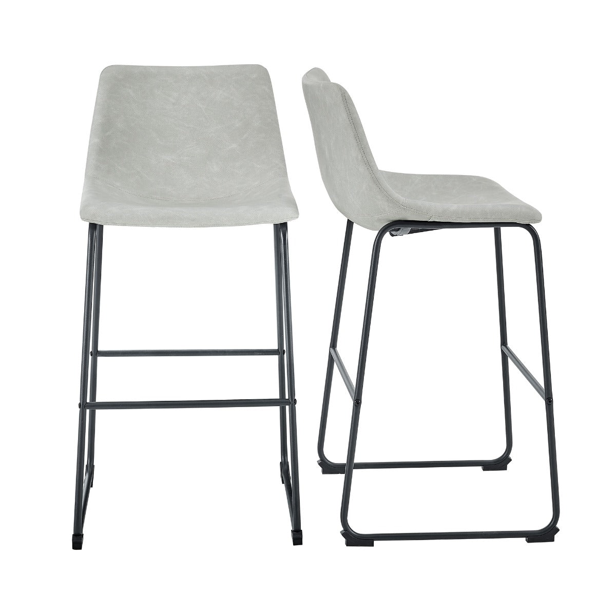 Bring the sophisticated look of leather seating to your kitchen with faux leather barstools. They'll be the perfect addition to your eating or entertainment space and work great for everyday use. The synthetic leather is soft to the touch, while the curved seating provides comfort. Supported with powder-coated steel legs for a durable, long lasting design. These barstools look best in an urban industrial styled space, but also can coordinate well with many other popular interior styles. Set includes two bar chairs.