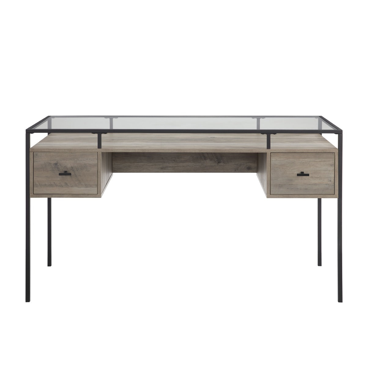 Walker Edison 56" 2 Drawer Glass Top Desk - Grey Wash