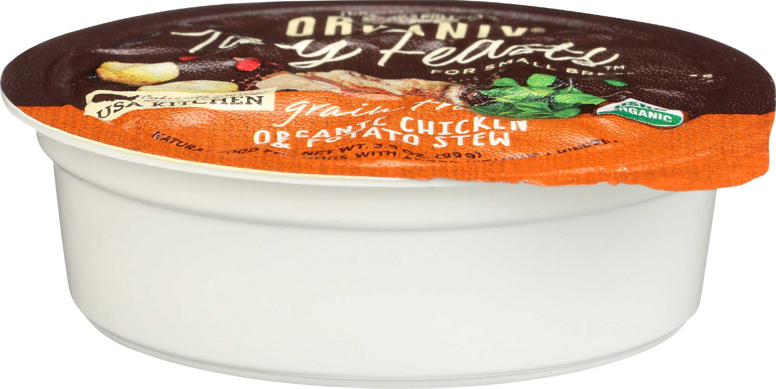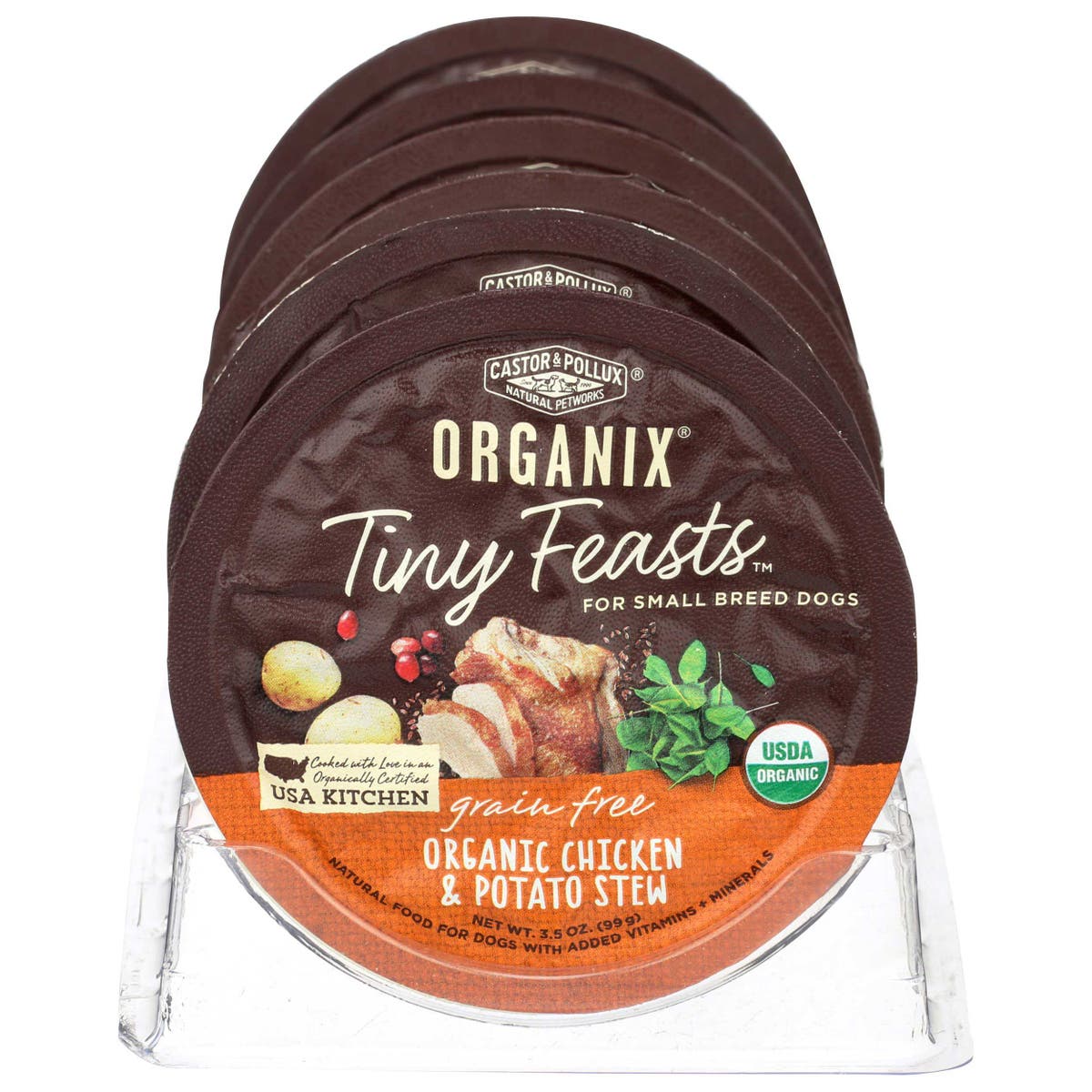 Castor and Pollux Wet Dog Food, Organix Tiny Feasts, Chicken and Potato Stew Is A Delightfully Delicious Food Option For Your Canine Companions. Made Primarily With Natural Ingredients And Fortified With Vitamins, Organix Tiny Feasts, Chicken and Potato Stew Is Largely Free Of Unnatural And Unnecessary Additives. This Product Is Organic And Grain-free. Each Tray Of Castor and Pollux Wet Dog Food, Organix Tiny Feasts, Chicken and Potato Stew Weighs 3.5 Oz. Refrigerate After Opening. See Label For Warnings.