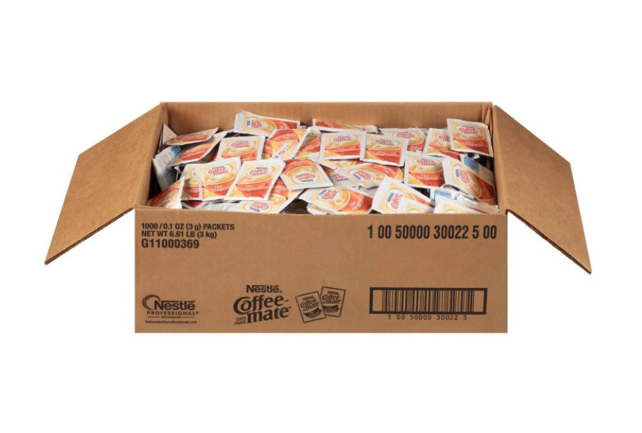 The Nestle Coffee-mate Original Powdered Creamer Singles add a classic and creamy flavor to any cup of coffee. It requires no refrigeration and comes in single serve cups, which makes these Nestle Coffee-mate powdered creamer singles easy-to-use. Each bulk case comes with 20 boxes of original creamer.