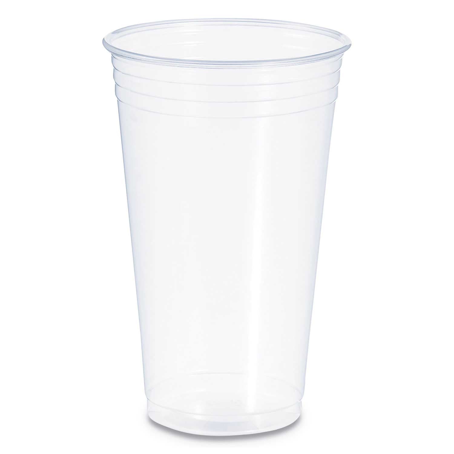 Serve cold beverages stylishly in crystal clear Conex cups. Raised sidewall rings and rolled rim enhance rigidity. Strong, durable PET construction provides excellent crack resistance. Cup Type: Cold; Capacity (Volume): 24 oz; Material(s): Polypropylene; Color(s): Clear.