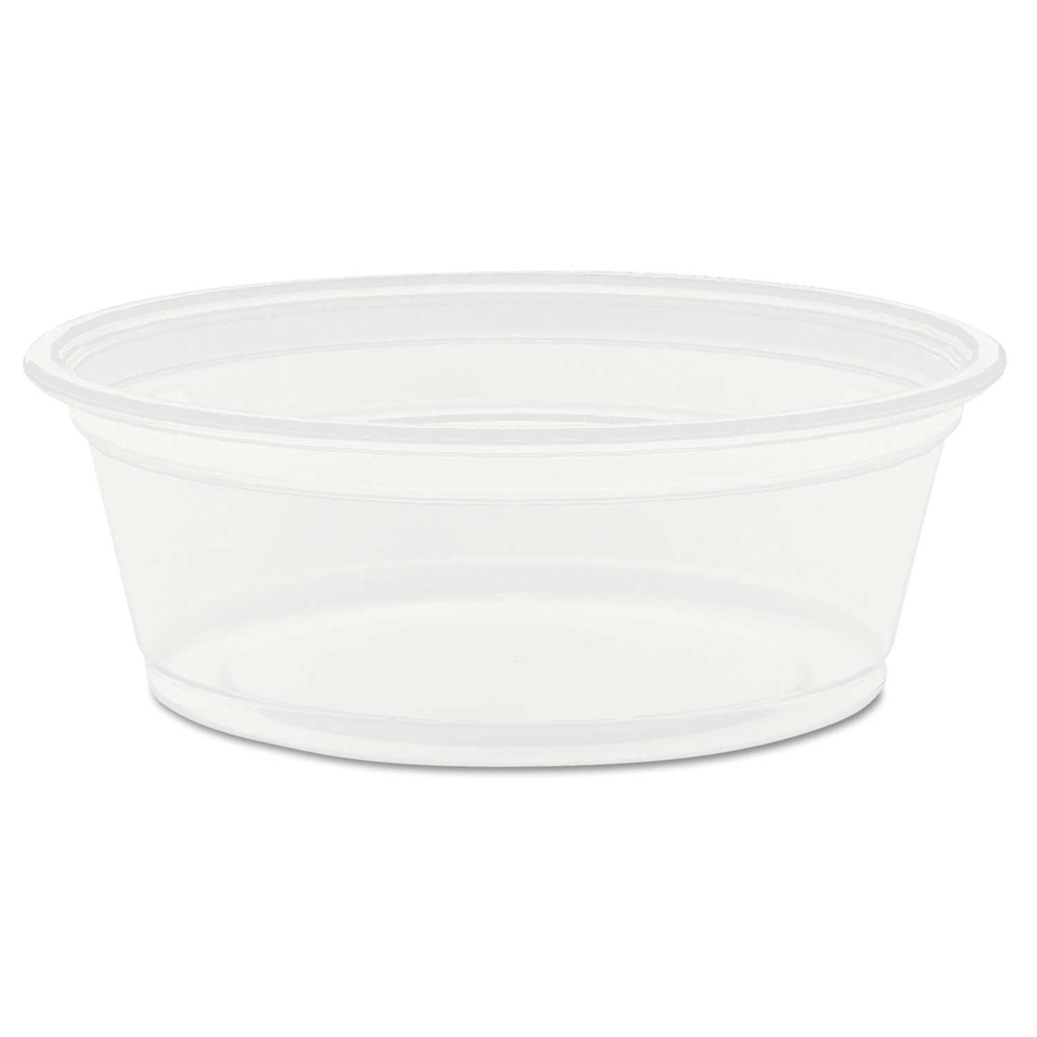 Easily distribute food and beverage samples, filled-to-order condiments as well as liquid- or pill-form meds. Handy containers provide the perfect portion for any purpose. Made of crack-resistant polypropylene, they're ideal for many dining-, carryout- and medical-service applications. Cup Type: Portion; Capacity (Volume): 1.500 oz; Material(s): Plastic; Color(s): Translucent.