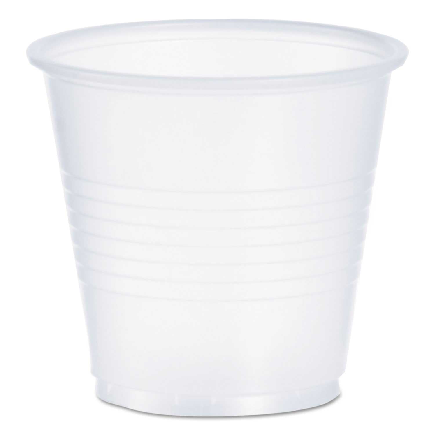 Perfect for any occasion where cold beverages are being served. Double sidewall ridges for added strength. Crack-resistant design helps avoid spills. Translucency allows for better drink identification. Cup Type: Cold; Capacity (Volume): 3.5 oz; Material(s): Plastic; Color(s): Translucent.