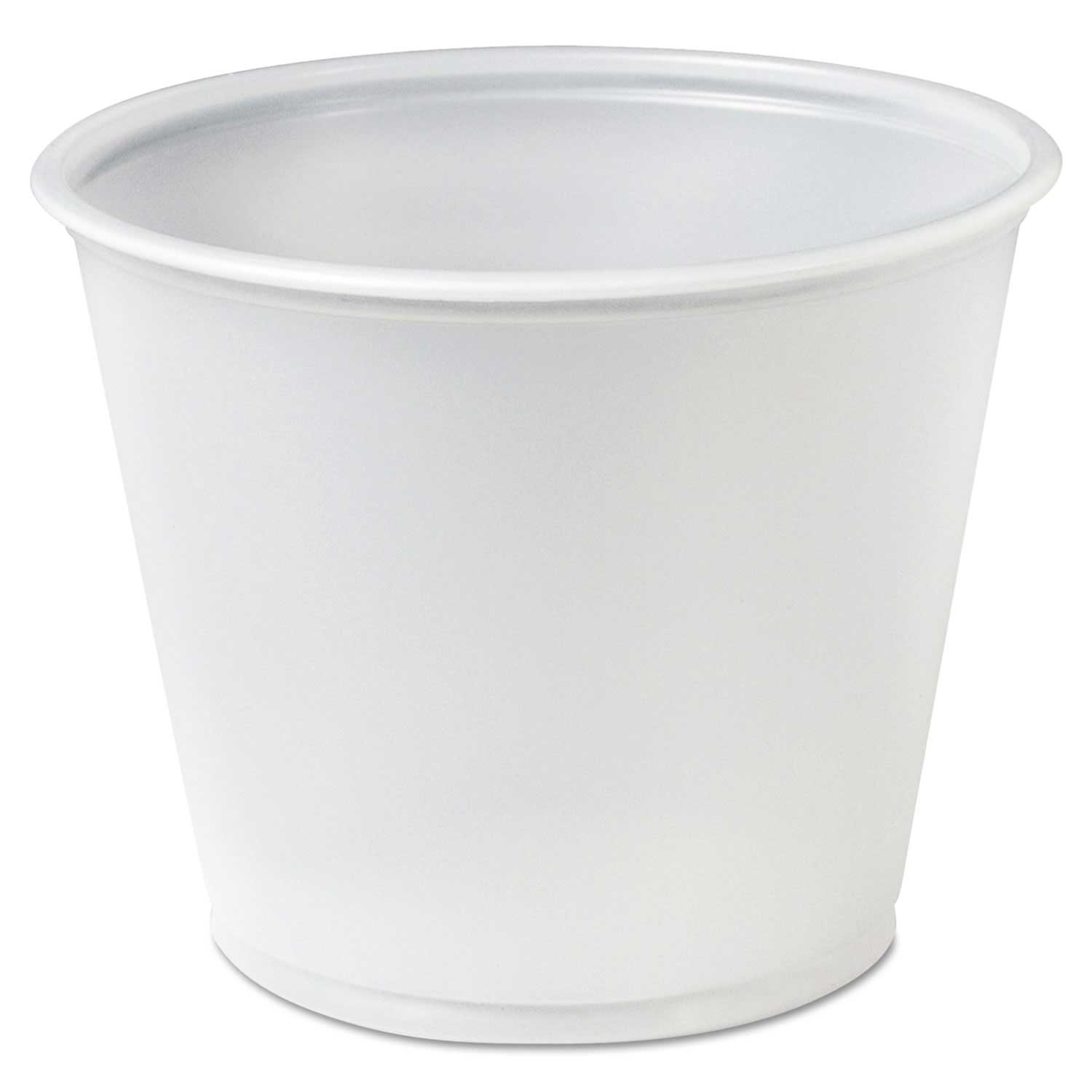 Convenient cups are perfect for beverage samples and condiment servings. Sturdy polystyrene ensure leak-resistant usage. Excellent for single portion servings, cups are conveniently disposable. Cup Type: Portion; Capacity (Volume): 5.5 oz; Material(s): Plastic; Color(s): Translucent.