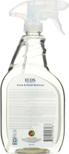 Ecos For Pets Stain And Odor Remover Utilizes Natures Way Of Dissolving Organic Wastes. Enzymes Digest And Liquefy Dead Organic Material The Same Way Enzymes Digest The Foods We Eat. Our Formula Also Uses Enzymes To Eliminate Organic Stains And Odors Such As Pet Accidents, Urine, Vomit, Foods, Grease/oil, Blood, Grass, Dirt, Coffee, Colas, Perspiration, Smoke, Wine, Juices And Natural Waste Byproducts. This Product Comes In A 22 Fl. Oz. Bottle And Is Gentle, Non-flammable And Never Tested On Animals. See The Facts Panel For Allergens And Warnings. Never Tested On Animals;one 22 Fl. Oz. Bottle Of Ecos For Pets Stain And Odor Remover;removes Organic Stains And Odors;see The Facts Label For Allergens And Warnings;uses Enzymes